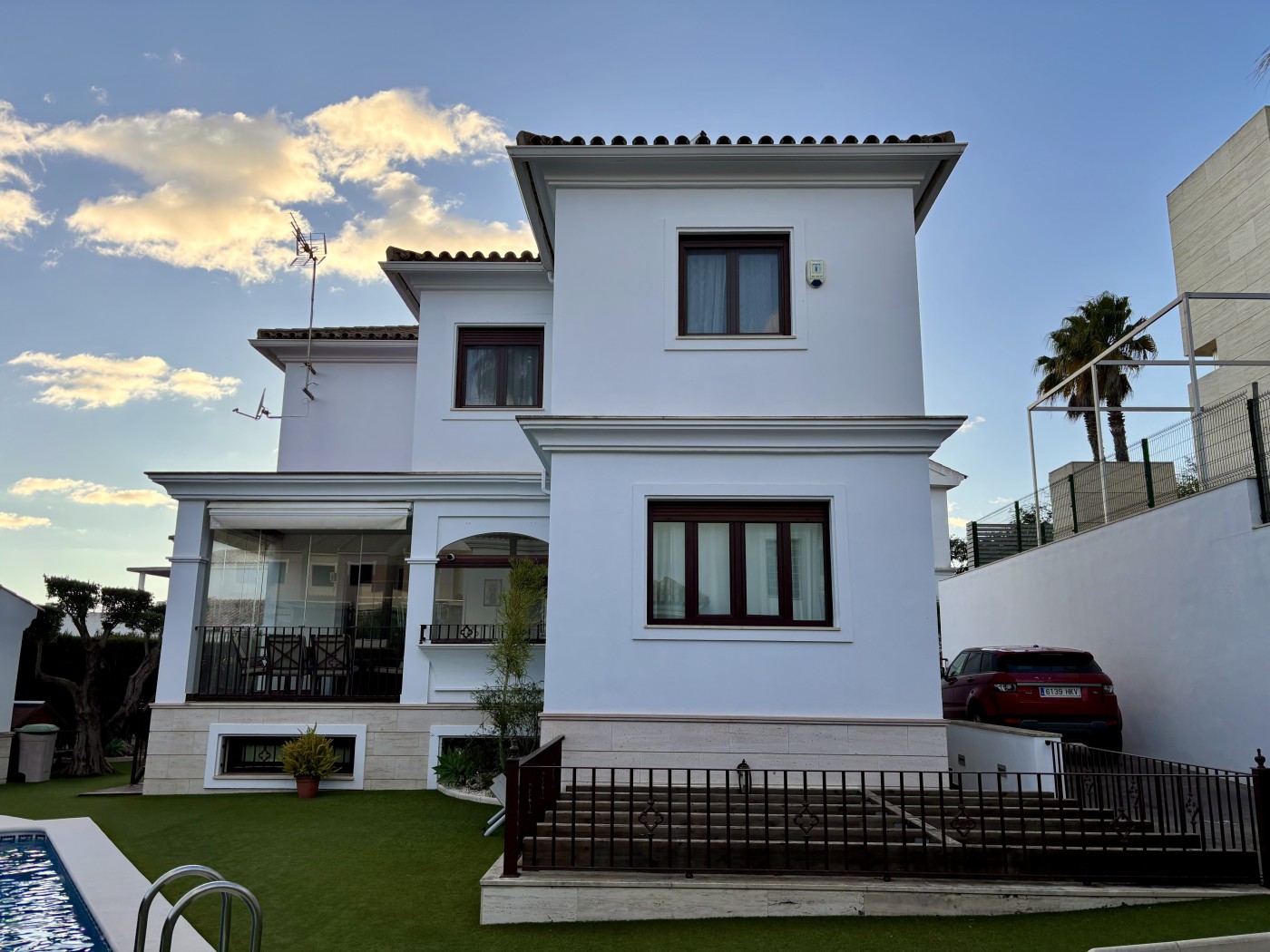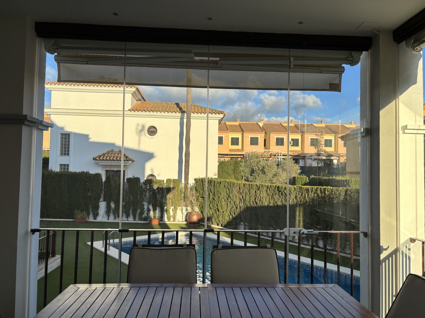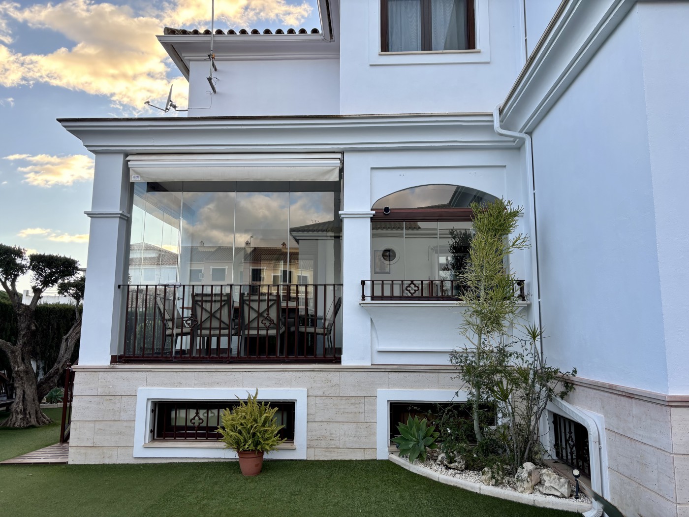 Detached Villa in Islantilla - Your Private Oasis by the Golf Course. Experience a unique lifestyle in this impressive detached villa, perfectly situated within the exclusive Islantilla Golf Resort. Surrounded by lush greenery and peaceful landscapes, this home offers the ideal blend of relaxation, comfort and Mediterranean charm. With 261 m2 of living space, the property boasts five generous double bedrooms, all featuring built-in wardrobes and abundant natural light. The master suite enjoys its own elegant en-suite bathroom, providing the perfect retreat for moments of privacy and indulgence. The bright, spacious open-plan living and dining area flows seamlessly into a beautiful glazed terrace, ideal for relaxing while overlooking the garden and your own private swimming pool. The modern, fully equipped kitchen is bathed in sunlight, making cooking a real pleasure. Step outside and enjoy a large private garden, perfect for sunbathing, family gatherings or alfresco dining. The property also includes two outdoor storage cabins - one with an exterior bathroom - and a charming porch designed for long summer meals outdoors. Located in a secure and tranquil private residential area, this villa offers peace and privacy, yet remains just minutes away from the golden beaches of Islantilla, local amenities, restaurants and leisure facilities. A rare opportunity to enjoy the perfect lifestyle in the Spanish sun - surrounded by nature, comfort and exclusivity e and visit and let yourself fall in love.