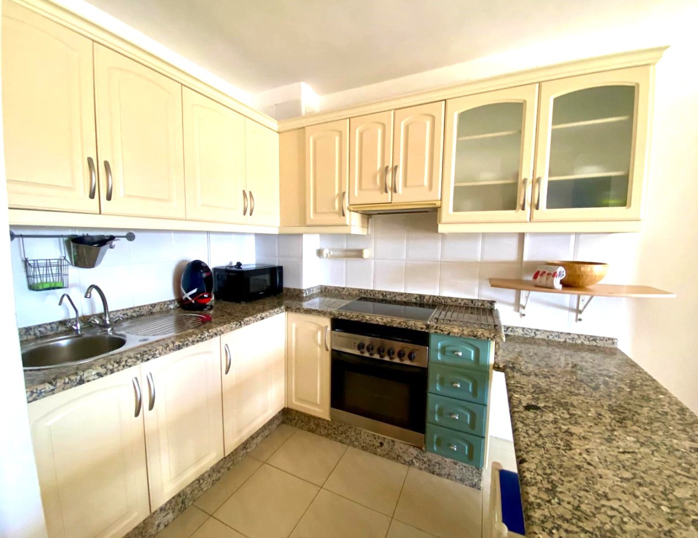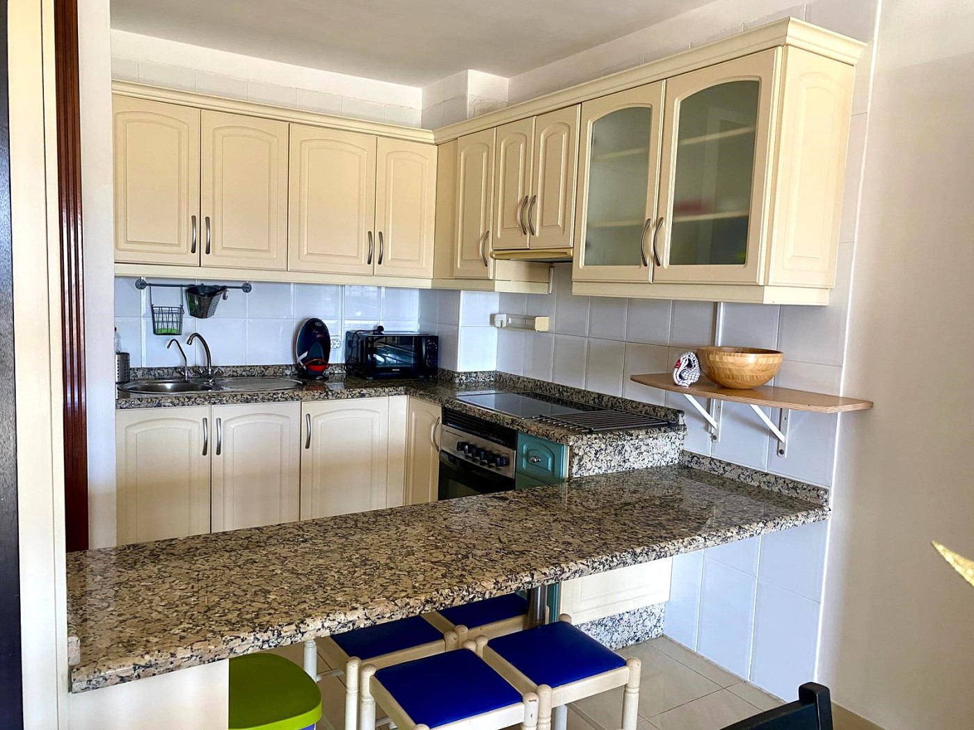 Amplio y luminoso apartamento localizado en la prestigiosa zona de Playa Paraiso al sur de Tenerife, Islas Canarias. Este apartamento consta de 2 habitaciones, una doble y otra simple, muy confortables con armarios empotrados, cocina abierta con cuarto de lavar, bano amplio con ducha, salon comedor, salon de estar y terraza con vistas panoramicas al mar y a la montana, donde disfrutaras de muchos momentos de relax. El apartamento se encuentra en un complejo residencial muy tranquilo y con buen mantenimiento, con zonas ajardinadas y zona de piscina para adultos y ninos. La zona de Playa Paraiso esta convenientemente ubicada cerca de las vias principales al sur de la isla de Tenerife y cuenta con atractivas playas naturales y un clima perfecto y calido.