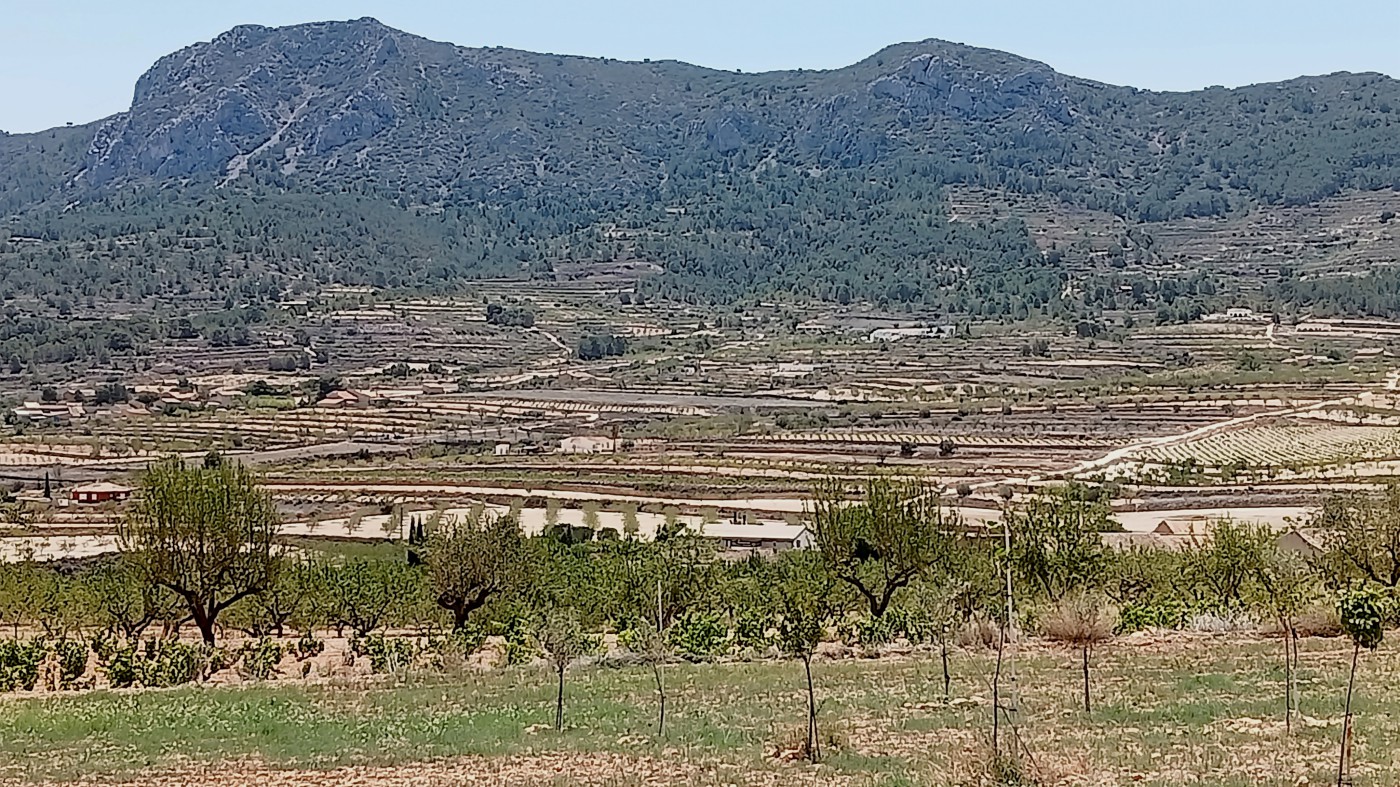 EXCELENTE OPORTUNIDAD! Terreno rustico con licencia urbanistica para la construccion de una vivienda. Se permite edificar el 2% del total del terreno. Vivienda con vision de 360 grados y vistas del Valle de las Uvas del Vinalopo. Ubicado en la comarca del Vinalopo Mitja, provincia de Alicante, a 3 km de La Alguena y proximo a Alicante (50 km), Murcia (53 km), aeropuerto (35 km), Elche (25 km) y playas (45 km). El terreno, de 11300 m2, cuenta con una zona llana de 5000 m2 ideal para vivienda, jardines y piscina, y otra de 6000 m2 en tres alturas con almendros, olivos y frutales. Acceso desde la CV-840, entorno natural, tranquilo y con vecinos. Proyecto actual de vivienda de 120 m2; se puede dise~nar hasta 220 m2.