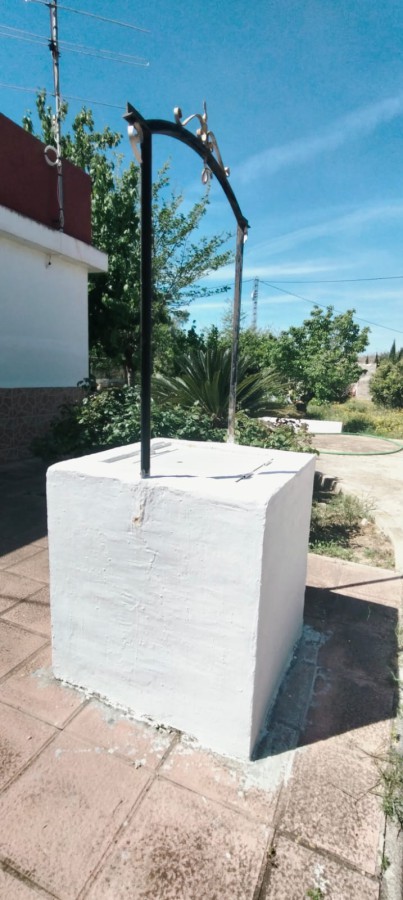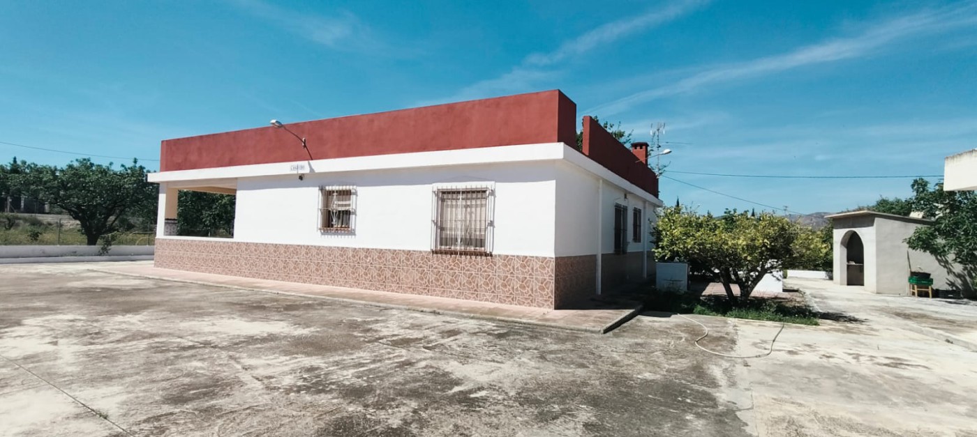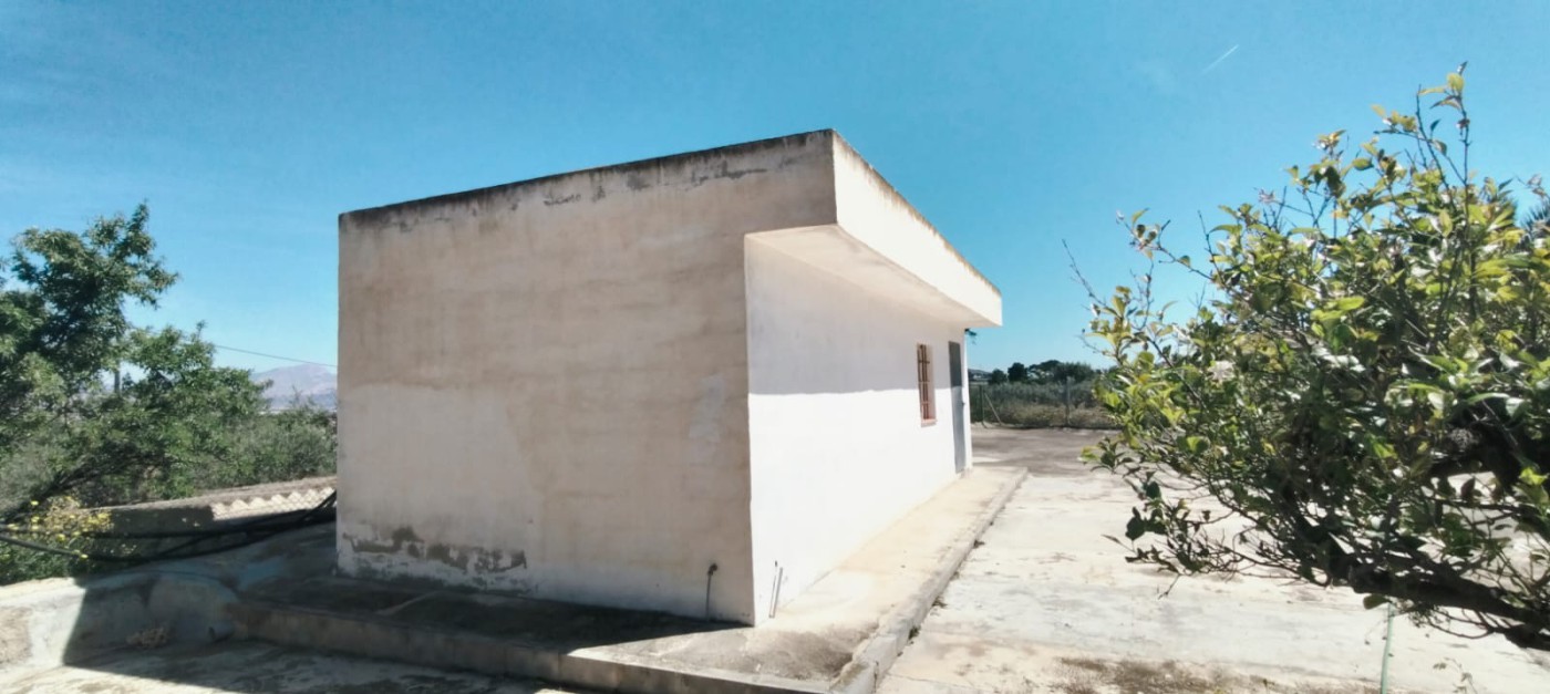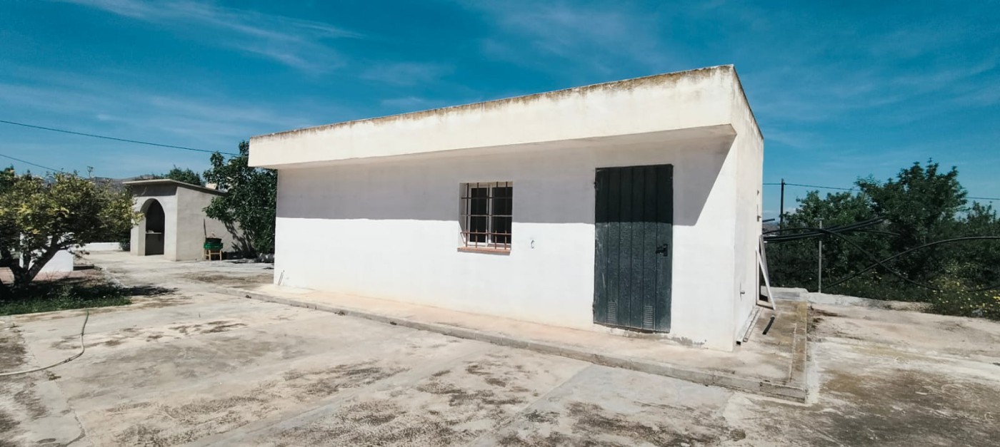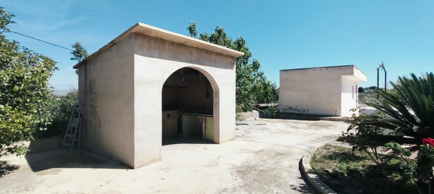 Description: Nestled on a fully fenced 9 tah`ullas plot, this independent chalet offers bright, spacious interiors, including a 25 m^2 kitchen and living room with fireplace. Minimal corridors maximize space. Outside, a 90 m^2 terrace overlooks mature fruit trees, olive and almond groves. With ample storage and parking, it blends tranquility and convenience just 15 km from Elche.