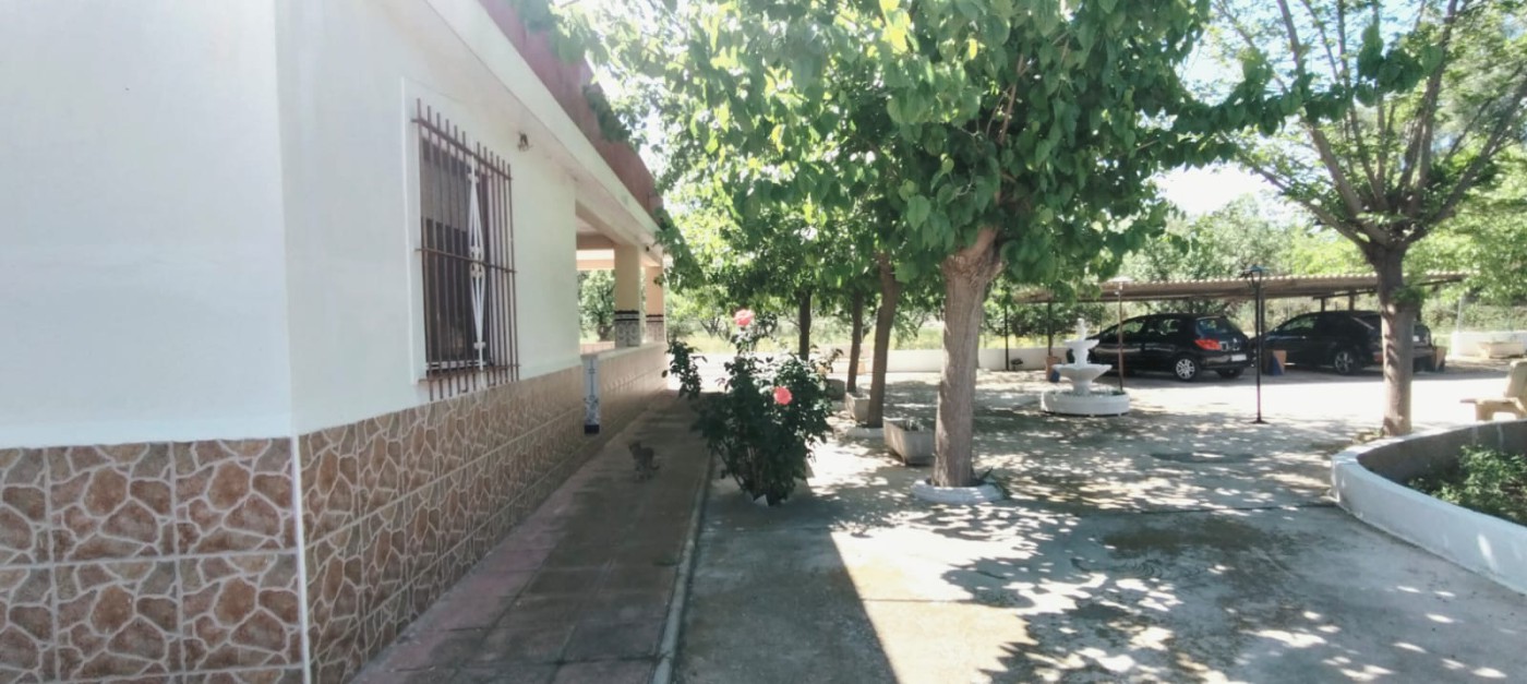 Chalet independiente con amplia parcela en Aspe a solo 15 km de Elche. Se vende magnifico chalet de 150 m2 construidos ubicado en una parcela de 9 tahullas completamente vallada con acceso asfaltado y doble vallado interior que aporta mayor privacidad y seguridad. La vivienda destaca por su excelente distribucion con espacios amplios y muy luminosos. Dispone de 3 dormitorios 2 banos completos una gran cocina independiente de aproximadamente 25 m2 con mobiliario en tonos marrones y un acogedor salon de 25 m2 con chimenea ideal para disfrutar en familia. Cuenta ademas con poco pasillo maximizando el aprovechamiento del espacio. En el exterior la propiedad ofrece una fantastica terraza de 90 m2 perfecta para reuniones o momentos de relax. La parcela alberga una gran variedad de arboles frutales asi como olivos y almendros creando un entorno natural privilegiado. Extras y caracteristicas: aljibe subterraneo; 3 almacenes de 40 m2 30 m2 y 80 m2; aparcamiento con capacidad para dos vehiculos; aire acondicionado tipo split en salon; suelos de gres; carpinteria exterior de aluminio e interior de pino. Una excelente oportunidad para quienes buscan tranquilidad espacio y contacto con la naturaleza sin renunciar a la cercania de la ciudad. Ref 00799
