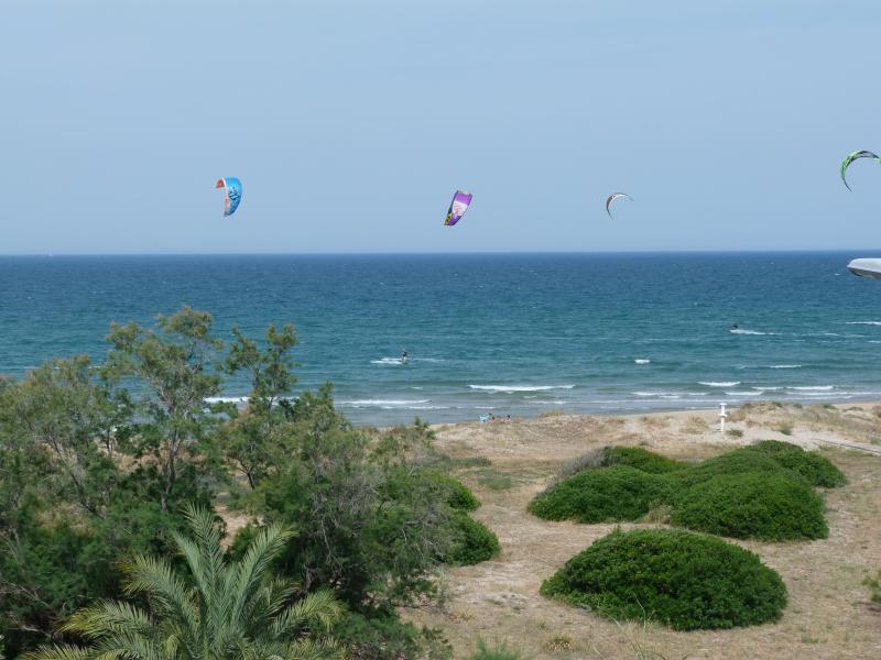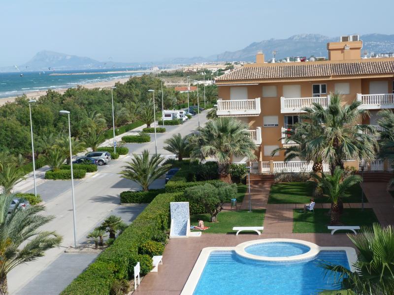 Top quality apartment with best views of Mediterranean Sea. The apartment is located in one of the few virgin beaches that remain. AC included. 2 suite bedrooms, 1 lounge, 1 big terrace, all of them with the nicest views of the sea. 2 fitted wardrobes. Furnished. Garage. The beach is very close, about 50 meters, only 1 minutes walk. No high builidings nearby. It has garden areas with a very nice swimming pool. The town is so quiet. Adress: Carrer Bon Aire, 1. 46712 Valencia. Big cities very near: Gandia (10 min), Valencia (1 hour), Madrid (3 hours), Barcelona (3 hours).