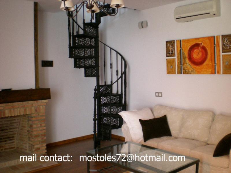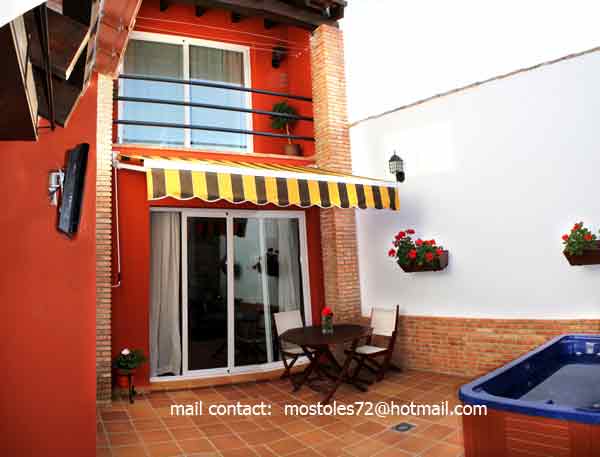 It has two floors, on the first floor living room, kitchen, patio, fireplace, Jacuzzi spa and sauna, on the second floor, bedroom, bathroom and terrace.