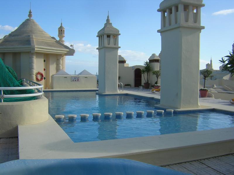 Elegant studio inside of the Puerto Marina with fantastic sea and port views. Very bright. Luxurious qualities, A / C, independent full equipped kitchen, marble bathroom with bath. In the roof terrace are a swimming pool, sauna and barbecue area. Built 42 m2