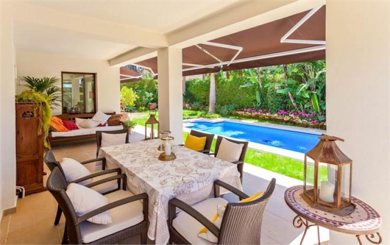 Luxury modern beachside villa in Marbella. Located in the privilege residential area of Marbesa, this three bedroom, four bathroom property in Marbella brings the very best in terms of location, views, construction and elegant interior design. You will adore the fabulous kitchen with top appliances and showers of natural light. The adjacent living and dining rooms allows access to the ample cover terrace with several sitting areas. In addition this wonderful Marbella property enjoys a swimming pool and a pond with Koi Carps. Features this property in Marbella offers: air conditioning h/c on bedrooms, terracotta floors, fireplace, interior and exterior alarm system, large sunroof terrace and parking.