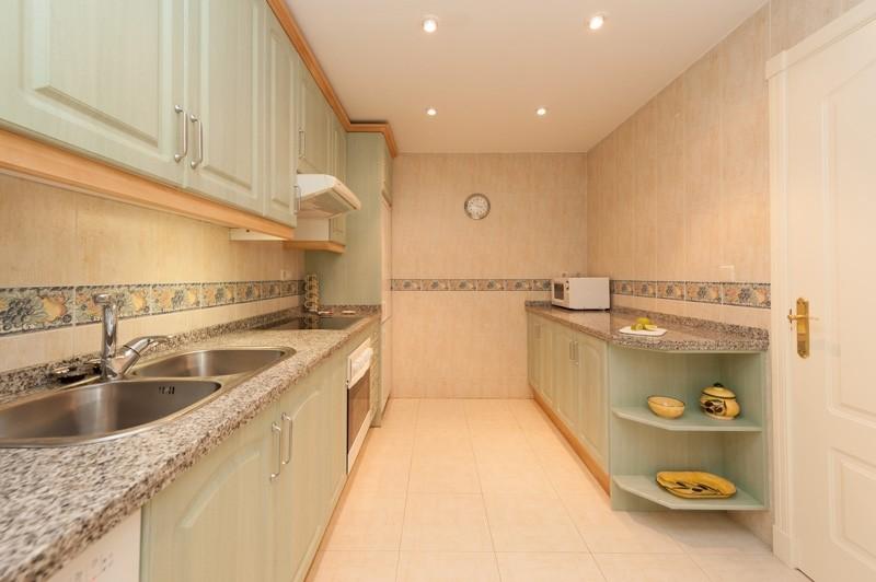 A very spacious 2 bed, 2 bath, groundfloor apartment in a beautiful, popular gated complex situated in Nueva Andalucia. This apartment has a very large terrace and its own private garden where you could even put a pool in if so desired. Underfloor heating throughout this immaculate apartment, this urbanization is very close to all amenities, golf courses, restaurants and a lake.