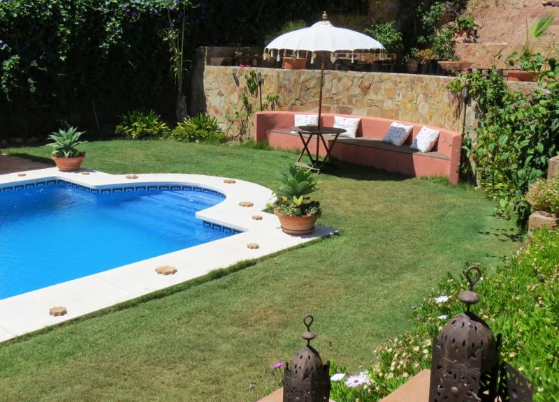 Charming individual villa. Garden and swimming pool, terraces and porch on a plot of 800 m2. Just seven years old. South orientation. It has 3 more raw attic and basement floors. Located in one of the best residential areas of Malaga, very quiet, 10 minutes from downtown and the beach.
