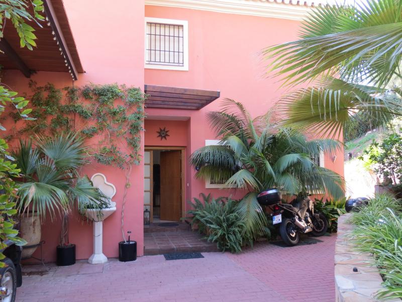 EXTERIOR: Patio, semi-covered porch, garden with automatic irrigation, private pool and covered parking for 2 cars (automatic door)