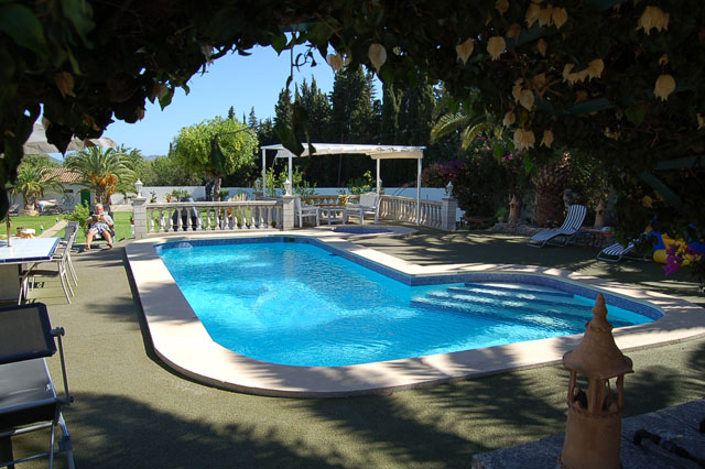 Good size private and quiet plot of 2 724m2 beautiful terrace and lawn areas covered porch veranda terrace off road parking car port large garden store house barbecue area swimming pool outside Jaccuzi and ornamental fish pond.
