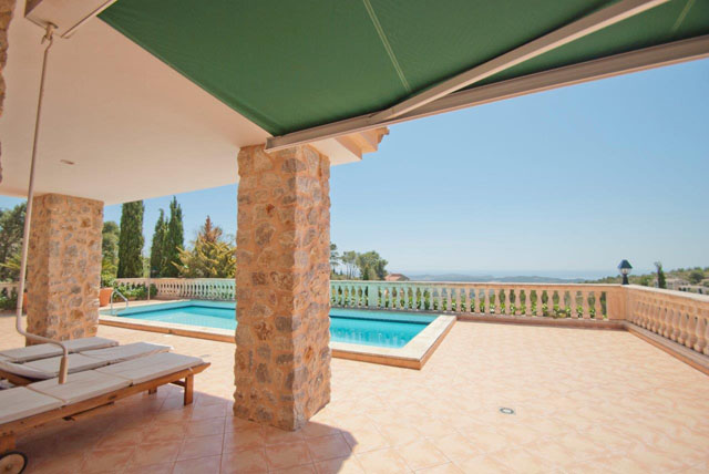 Beautiful 4 bedroom / 2 bathroom villa with pool situated in an exclusive residential area above Calvia village on a hillside plot of 4 000 m2 with stunning views to the surrounding mountains and down to the Mediterranean Sea.