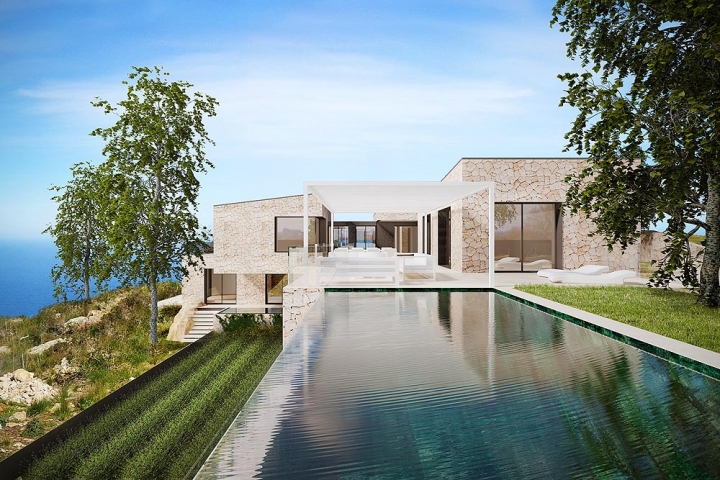 This is a new building project the price refers to a turnkey villa with top designer interiors (kitchen cabinets doors bathroom fittings) finished landscaped garden large pool all installations of the highest quality with underfloor heating air conditioning etc.