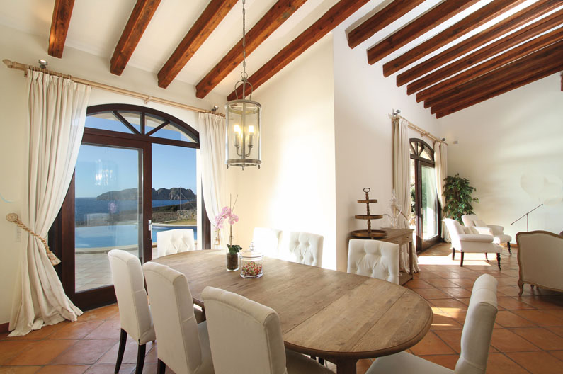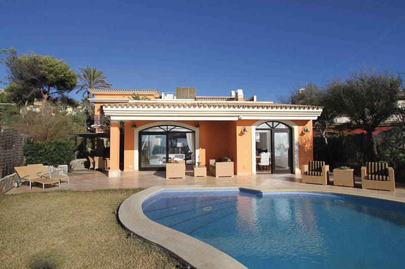 This high quality 4 bedroom villa plus guest apartment is located front line to the sea in Santa Ponsa very close to Port Adriano several golf courses and beaches. It has direct sea access and from the spacious terrace you can enjoy beautiful sea views.