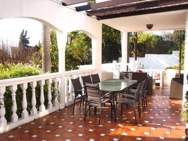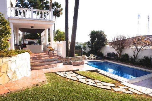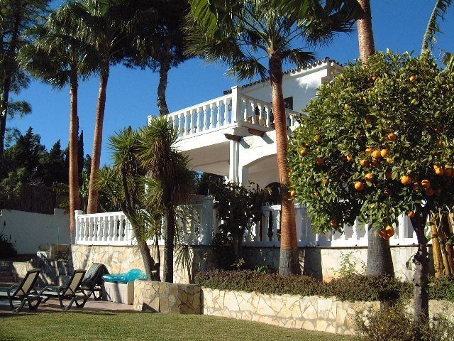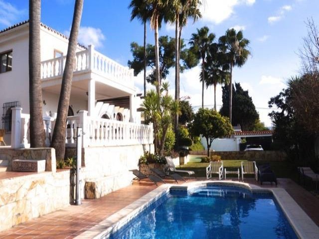 GREAT FAMILY VILLA WITH LOVELY SEA VIEWS ON THE GOLDEN MILE REDUCED PRICE. This villa is situated in the Golden Mile and only a short drive away from Marbella and Puerto Banus with its wonderful offer of designer boutiques bars and restaurants. This south oriented villa enjoys lovely views over the sea garden and pool which is heated and salted. Built in the late nineties and totally renovated in 2010 on 2 levels this villa offers on the ground floor a long covered terrace that leads to a large living and dining area with a vaulted ceiling and fire place 3 bedrooms 3 bathrooms fully fitted kitchen with breakfast area and accessed to the summer dining area a laundry room and storage. On the top floor there are 2 bedrooms (both with a terrace) and a bathroom with shower and jacuzzi. Tiled in marble throughout this villa is fitted with A/C hot & cold underfloor heating throughout a water tank for 12.000 liters satellite television and much more. A really beautiful villa offering privacy and tranquility in one of the best areas of Marbella.