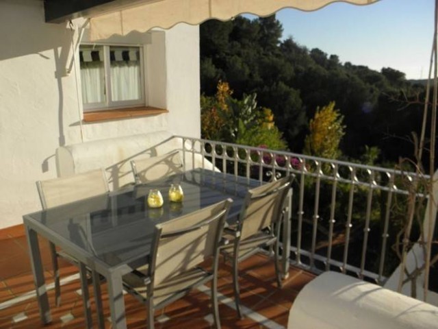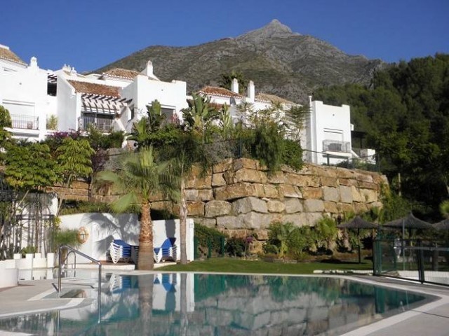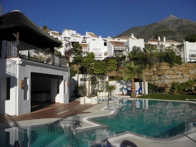 BEAUTIFUL TOWNHOUSE AT A REDUCED PRICE!!! Looking for the best of both worlds Then look no further. This beautiful spacious townhouse sits in an idyllic country location at the foot of La Concha Mountain with views overlooking the beautiful pool mature landscaped gardens of the development and the mountains beyond and yet it is only a 10 minute drive to the center of Puerto Banus or Marbella. The townhouse offers a large living and dining areas 3 double bedrooms the master with en suite bathroom 2 bathrooms guest toilet and fully fitted kitchen. The property has a southerly orientation and is constructed to the highest of standards with quality cream marble flooring throughout fully installed A/C and a small well maintained private garden. The living room has a vaulted ceiling and a separate dining area. The property also comes with private off road parking.
