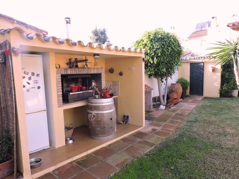 This spacious family house benefits from an excellent situation offering walking distance to all kind of facilities in Nueva Andalucia and a short 1 min .drive to the world famous Puerto Banus. The house is built over 2 levels and enjoys beautiful mountain views a private plot of 380 m2 with nice gardens and barbacue area beautiful terraces .Another features include entrance hall small bedroom with a bathroom large open plan living and dining room with low sitting and home bar. Direct Access to a fully fitted kitchen with solid wood oak furniture. A nice indoor staircase located in the center of the living room goes up to the upper floor where the bedrooms and bathroom are in addition to a terrace overlooking the courtyard.