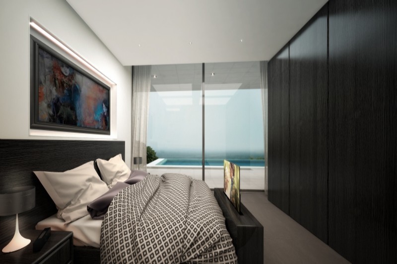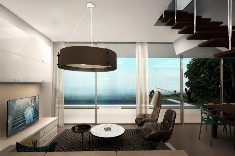 Each one of these modern style villas will comprise on the ground floor of a large entrance hall spacious open plan living area with direct access to the terrace a fully fitted kitchen two bathrooms and 2 bedrooms. On the first floor a master suite: with a generous 49m2 bedroom with en suite bathroom dressing room and access to two 75m2 solarium.