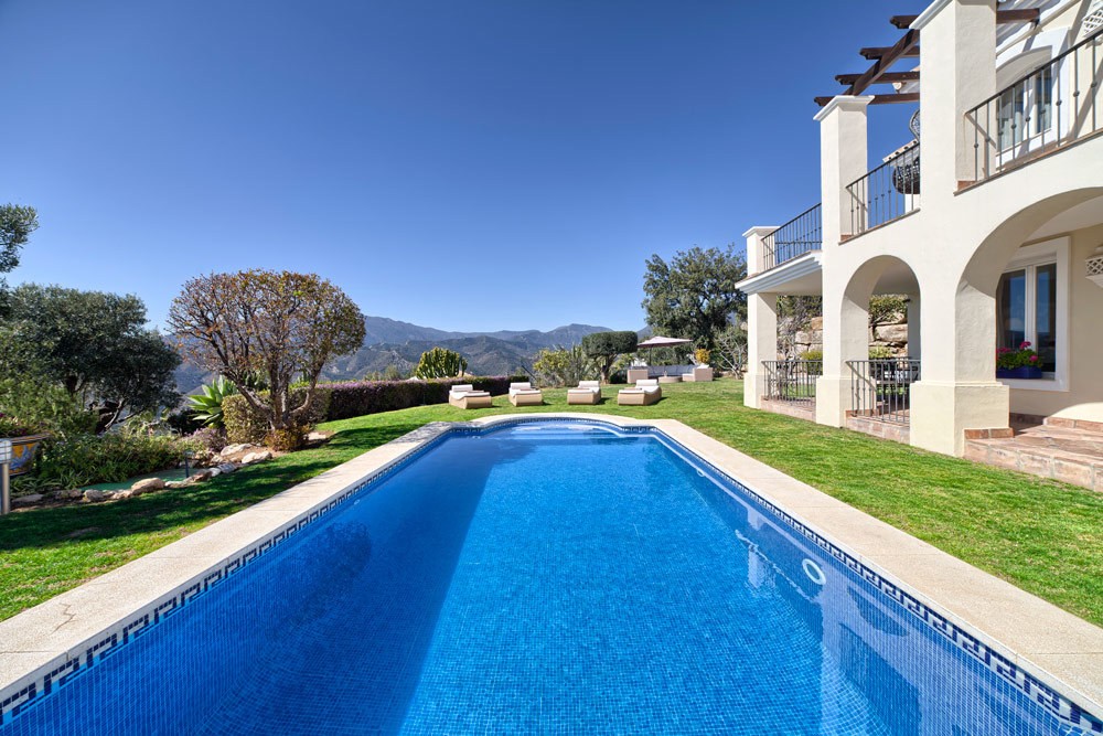This beautiful family home benefits from really outstanding sea lake and coastal views .South west facing the villa enjoys a large plot of 1.050 m2 with private swimming pool spacious 96 m2 terraces with outstanding views and big living areas with dining room fully fitted kitchen beautiful cream marble floors fitted bathrooms and luxury fittings throughout.