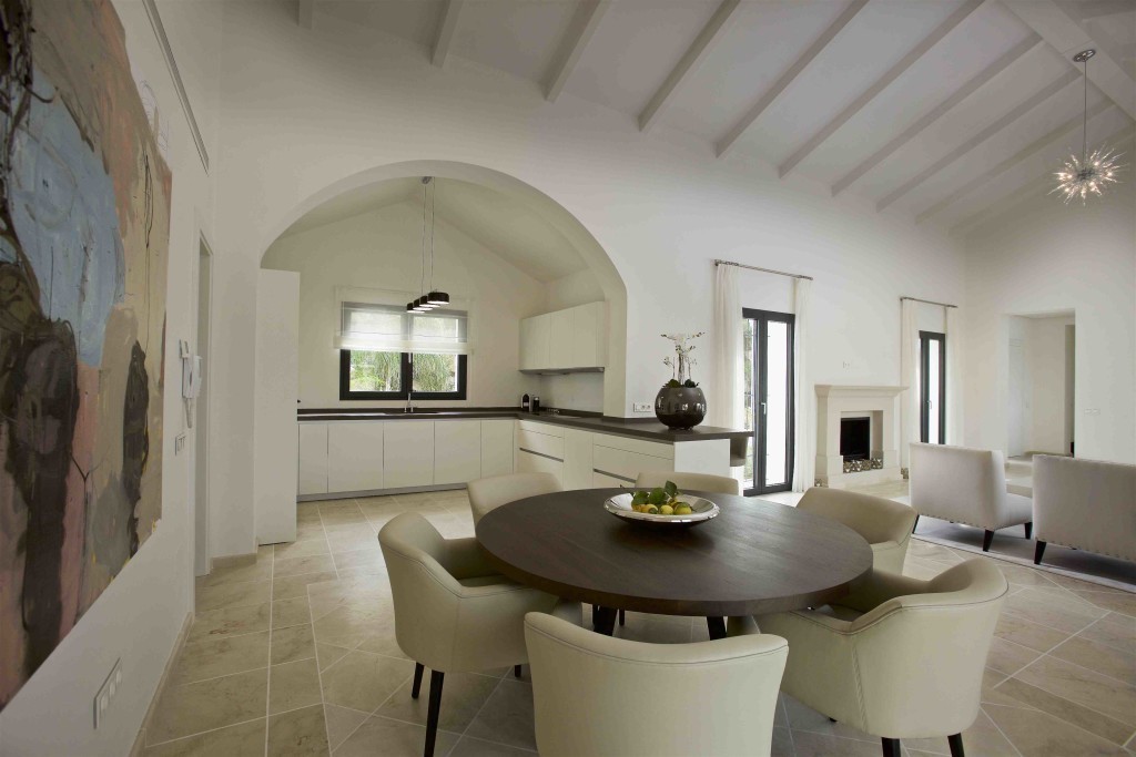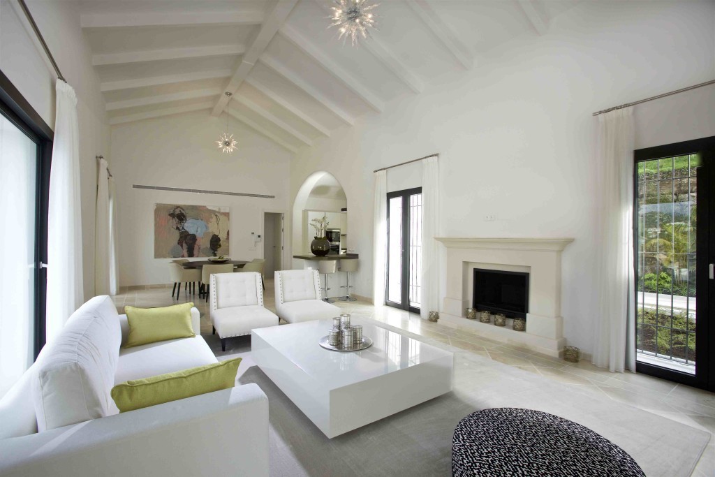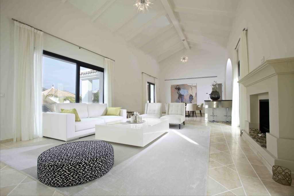 The amazing living room leads out to a large terrace with stunning views of Marbella s Concha Mountain and the 9th hole of the exclusive Los Naranjos Golf Course.