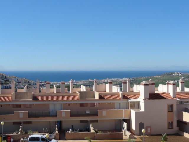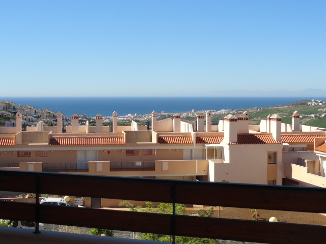 NEW RESALE NEVER BEEN USED This comfortable 2 bedroom apartment offers incredible sea views. It has a 30m2 terrace orientated to the south where you can enjoy panoramic sea views and in a clear day Africa. The apartment has never been used and it could be a perfect holiday home. It is set in a gated community with nice gardens and swimming pool. Also inclueded in the price there is a parking space. It is located with easy access to Golf and a short drive to the beach and the amenities in Duquesa Port.