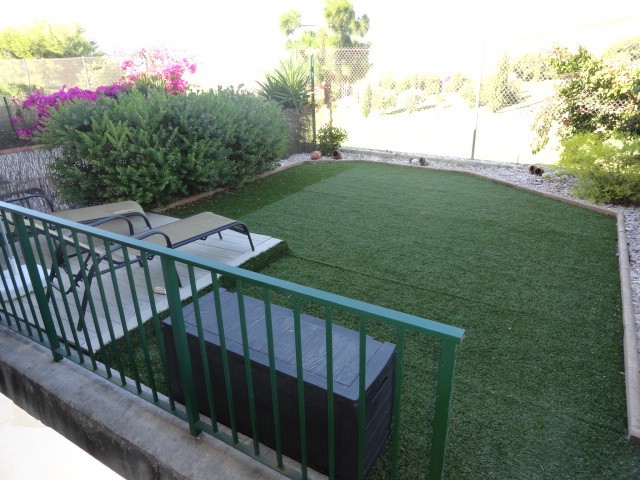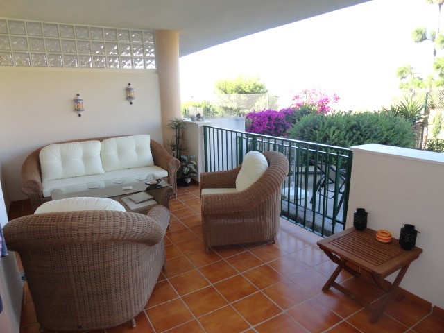Very nice apartment located first Line Golf. the apartment is in very good condition and its south west so you can enjoy the sun all day long. In front of the terrace you have a private garden of 40m2. As a plus this property has an empty room just under the terrace of around 25m2 which could easily be converted into an extra bedroom with on suit or a play room. The property is located a short drive to Golf and the amenities in Duquesa Port. Perfect holiday home!