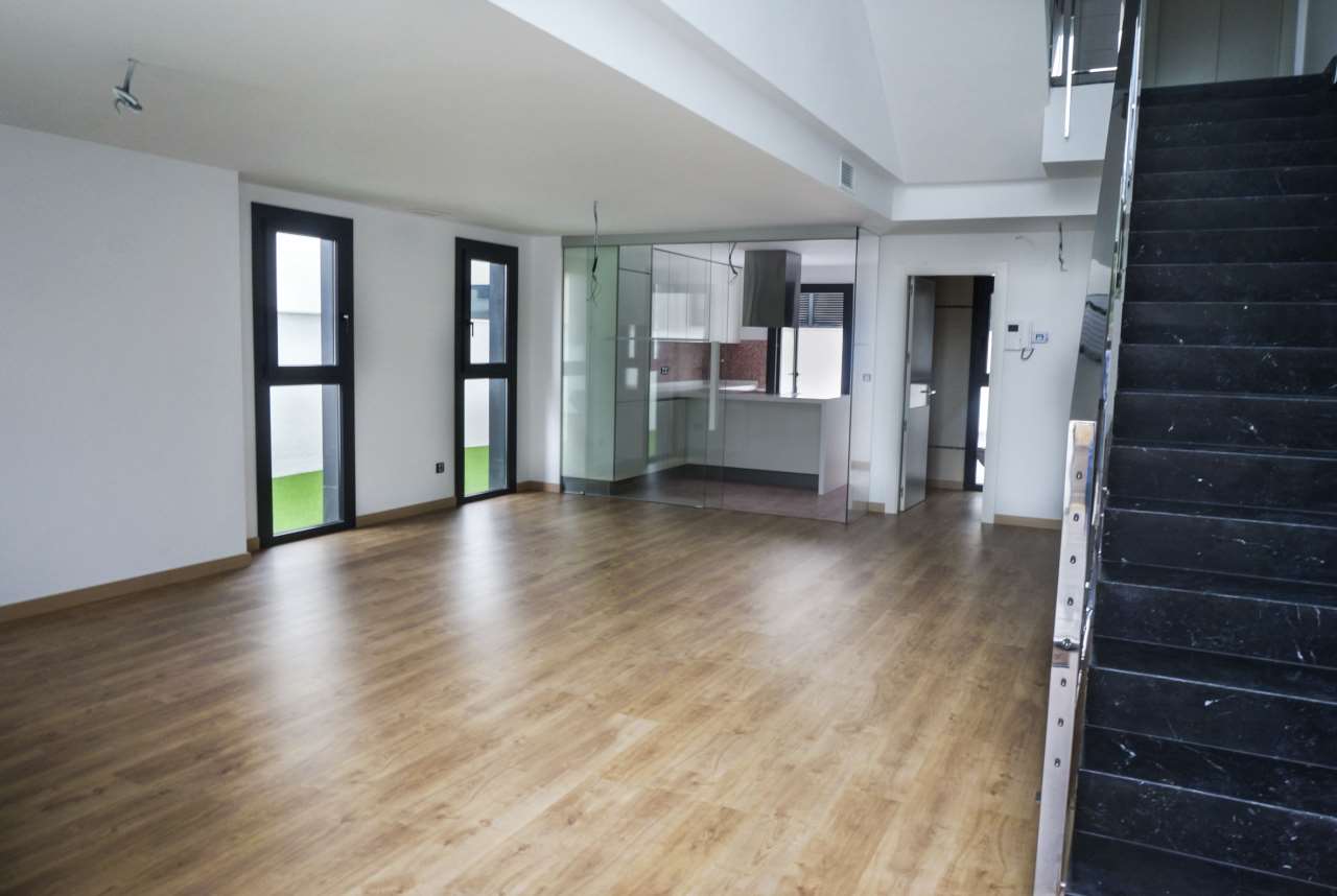 Modern bungalow in Albir. Built with high quality materials parquet floors double glazined windows armored door and video intercom munity garden with pool for adults and children. The house is distributed on two floors on the ground floor are the living room a kitchen a toilet and a porch. The first floor consists of three bedrooms two bathrooms one en suite and terrace. In the basement there is a garage with automatic door and a toilet.