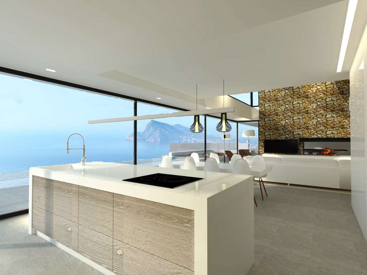 Modern project in a prestigious area of Altea Hills. Villa of 596 m2 two floors plus basement.The first floor consists of a large living room with a fireplace dining room kitchen utility room wine cellar billiard room a bedroom with bathroom guest toilet and sauna with a jacuzzi. The second floor consisits of three bedrooms one with a fire...