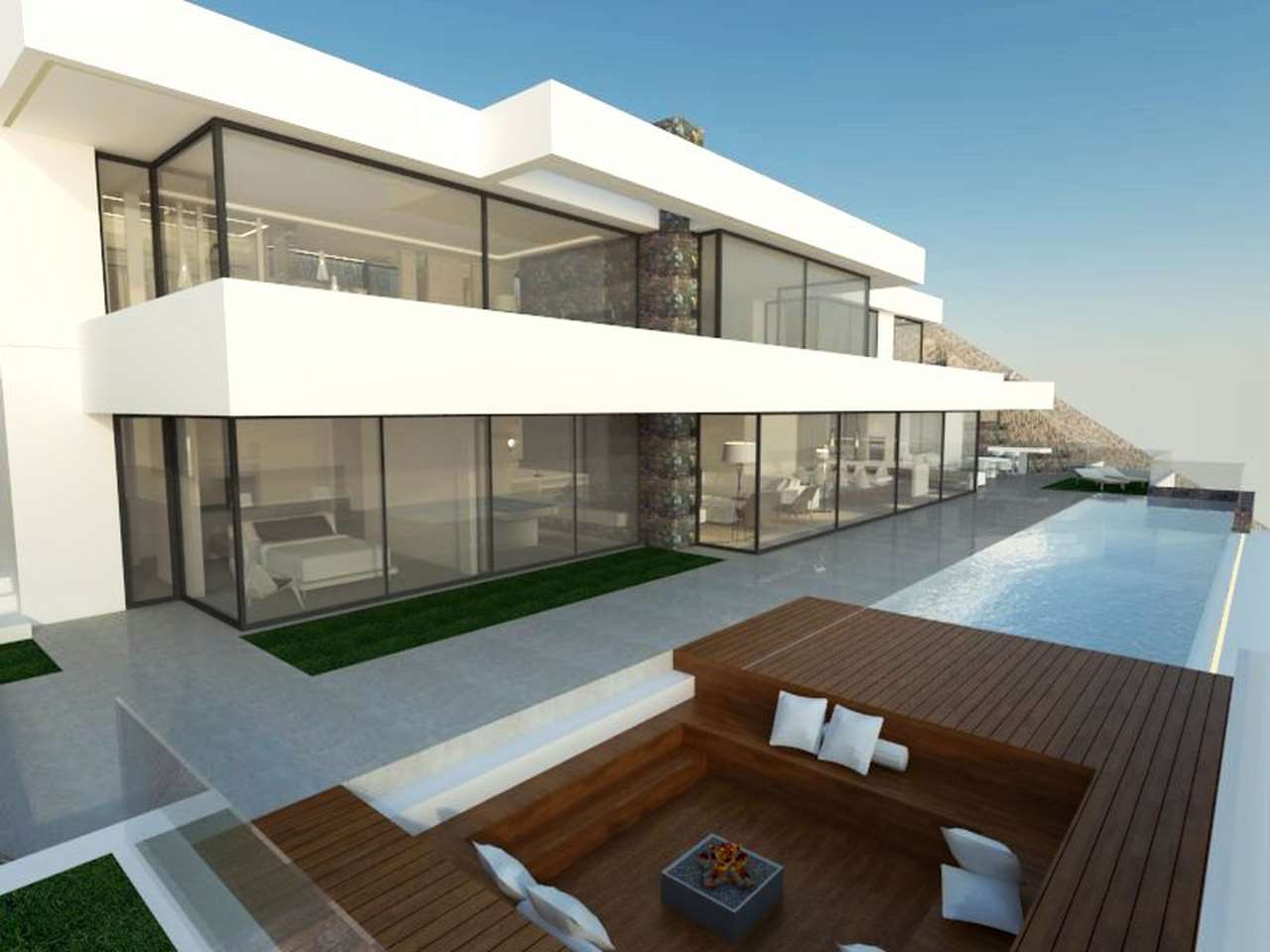 Modern project in a prestigious area of Altea Hills. Villa of 596 m2 two floors plus basement.The first floor consists of a large living room with a fireplace dining room kitchen utility room wine cellar billiard room a bedroom with bathroom guest toilet and sauna with a jacuzzi. The second floor consisits of three bedrooms one with a fireplace dressing room and en suite with sauna two bathrooms and a terrace with outdoor jacuzzi. The basement has a movie theater and bar. On the outdoor area there is a private pool with jacuzzi barbecue garden and a parking area for up to three vehicles.