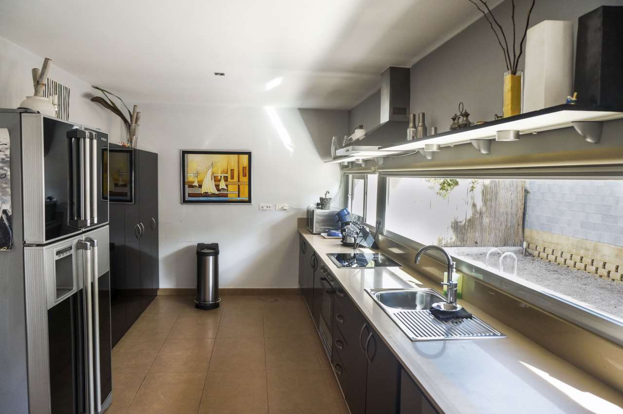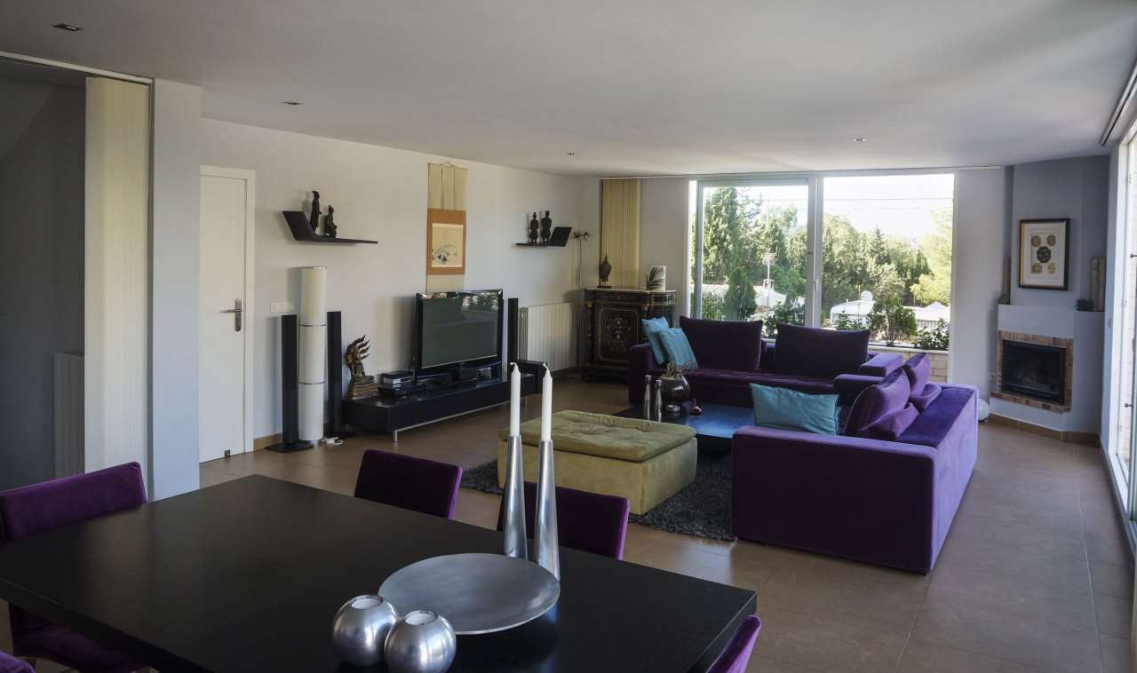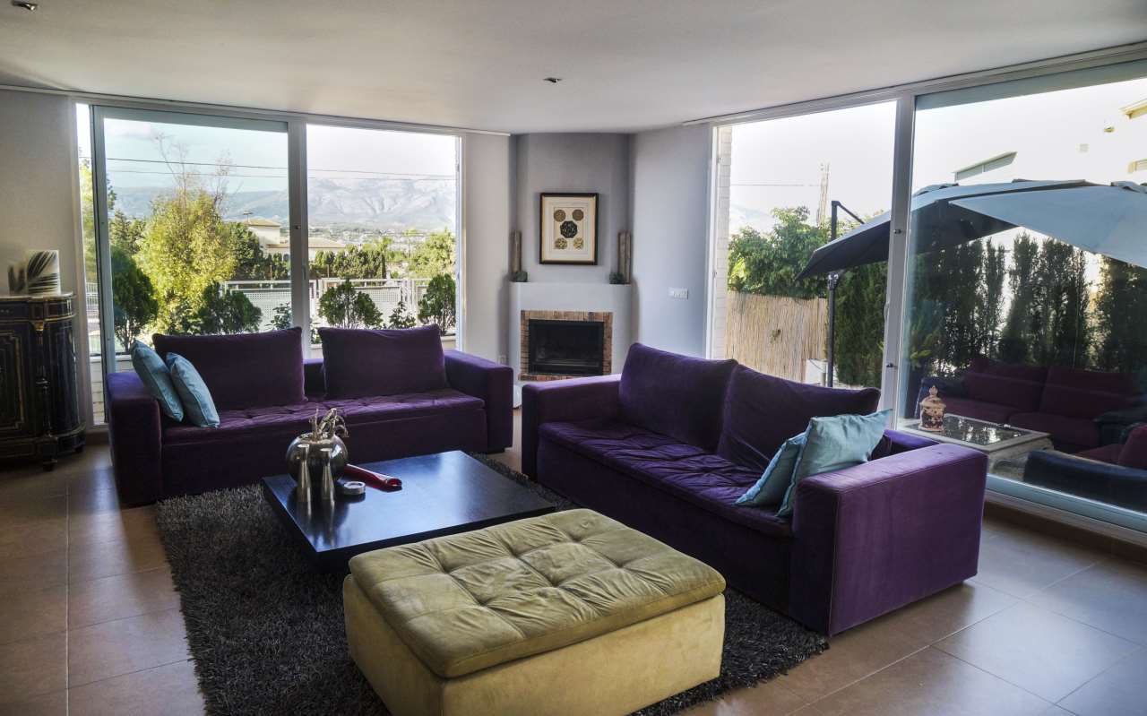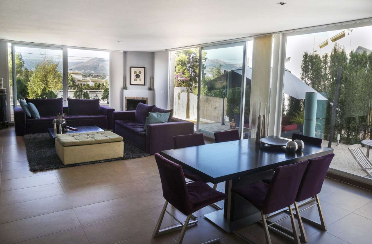 Chalet with a modern style in El Albir. In perfect conditions and with high quality material. An excellent and quiet urbanisation. The property has a private garden with a swimming pool a relaxation area parking space and a close garage. The property has 2 floors and on the first floor you will find a sunny living room with a chimney a big separate kitchen with a utility room and a bathroom. On the second floor you have three bedrooms the main bedroom has a suit terrace with a view and another bathroom.