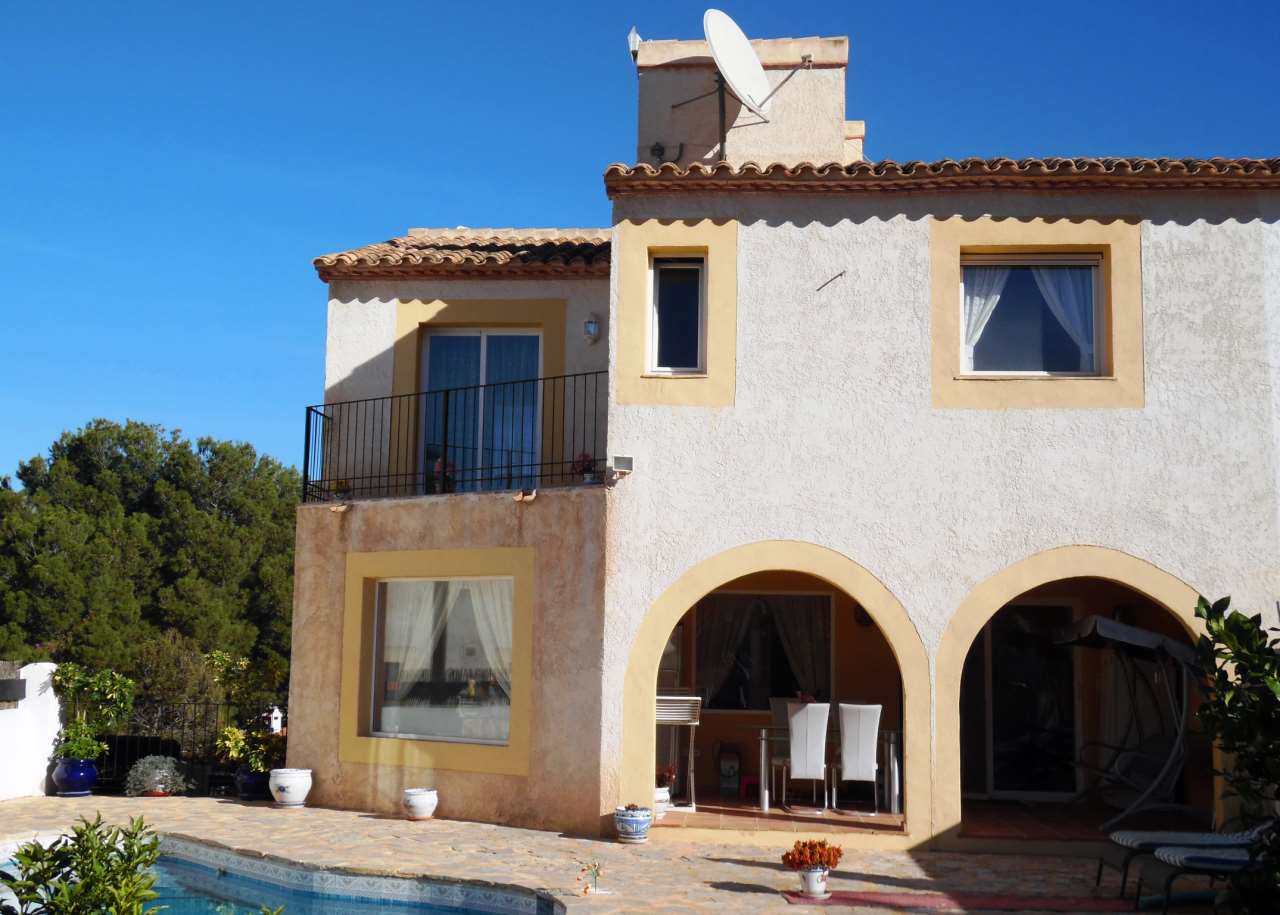 Magnificent villa with beautiful sea and mountain views in Albir. Very sunny south facing. It has a large living room with fireplace kitchen with plenty of storage terrace four bedrooms with fitted wardrobes three bathrooms one with spa bath and a toilet. Air Conditioning and Heating. Outside is a covered terrace garden pool and garage. In the basement there is a possibility of building a separate apartment.