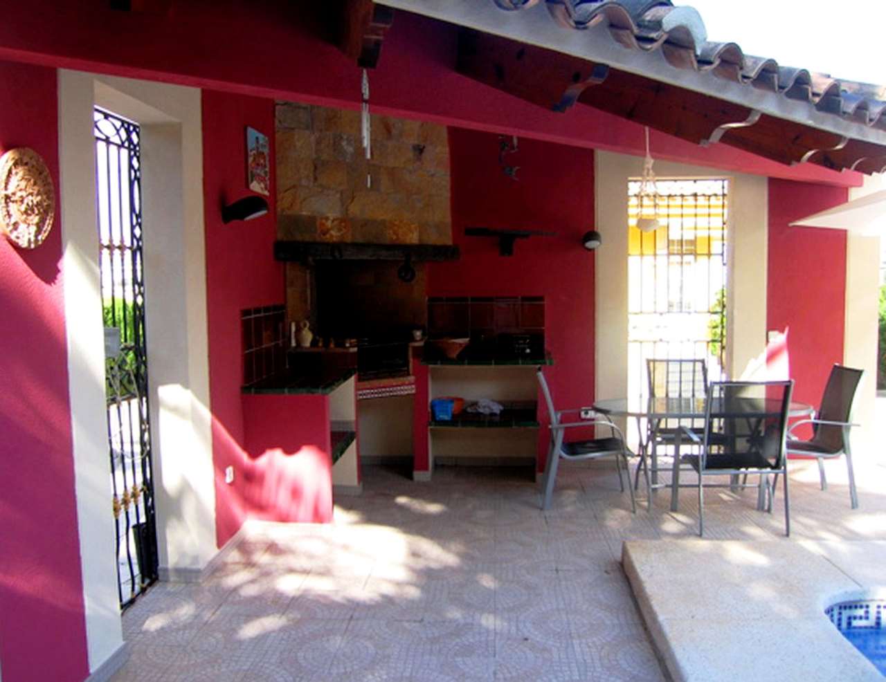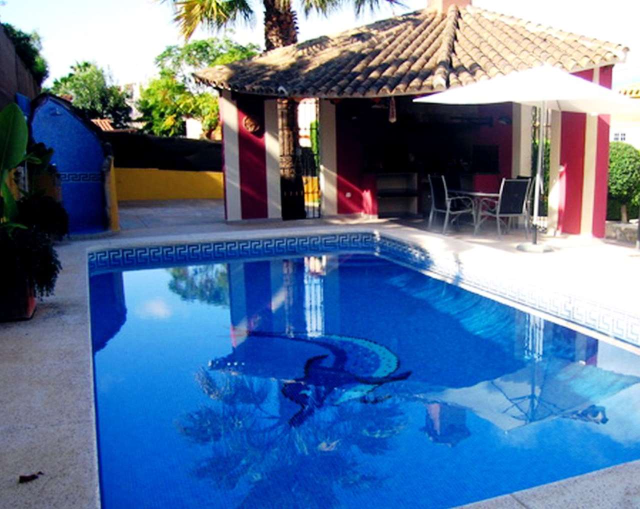 Beautiful villa in Albir the area is very quiet even so it is close to all amenities and downtown. Very sunny. It has a large plot of 1 000 m2 with private pool garden parking a beautiful covered barbecue and garage with storage. The interior consists of living room connected to the kitchen three bedrooms two bathrooms and a toilet. Sold fully furnished.