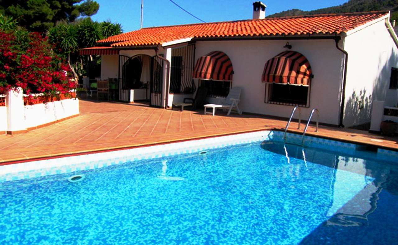 SPECIAL OFFER! Unique offer for investors. The plot is suitable for construction of a minimum of four independent villas. Beautiful villa in a quiet area of El Albir. It was renovated in 2010 the windows are new of tropical wood. Sold furnished the interior has a rustic beamed ceilings and dark wood. Has alarm air conditioning and heating. On the ground floor there is a complete apartment with its own lounge kitchen bedroom and bathroom. The main house has three bedrooms two bathrooms one en suite living room with fireplace and kitchen. In the large plot of 2 480 m2 is a private pool beautiful garden barbecue and lake fish. Garage and parking area.