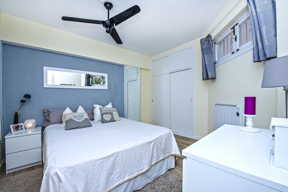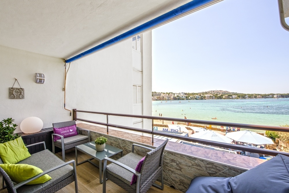 Spacious 1 bedroom front line apartment and terrace with wonderful bay views totally refurbished everything like brand new and with access to the sea just steps away.