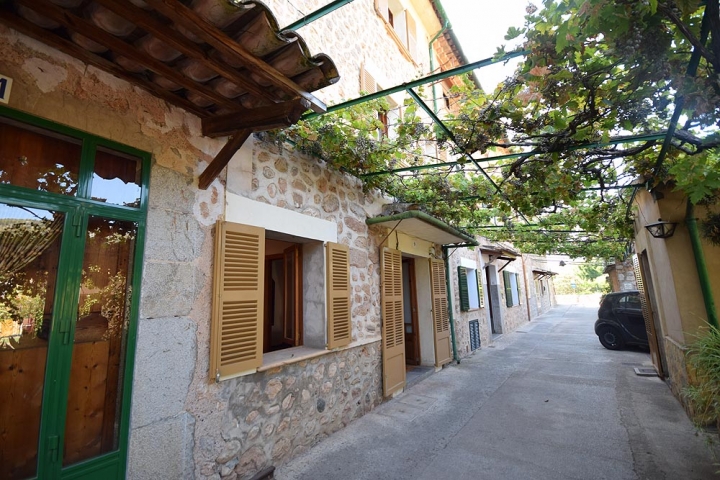 One of the two entrances particularly pleasant with a grape vine spanning across the cul de sac also to note the fantastic views from upstairs across the village the the Sierra Tramuntana mountain range.