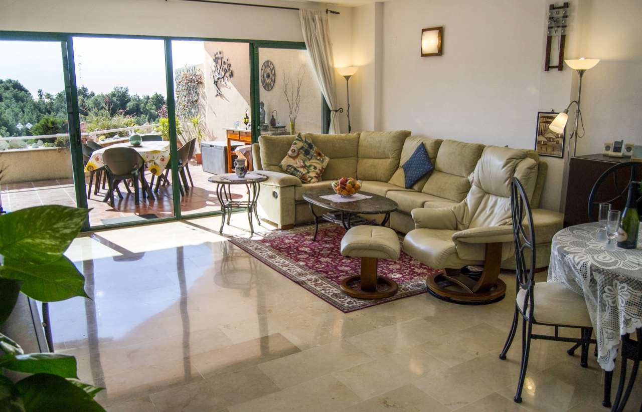 This beautiful apartment located very near the exclusive golf course of Altea offers astonishing views of the bay and the mountains. This truly is a one of a kind apartment offering a very large terrace with lots of sun. The building also offers two very large swimming pools surrounded with grass and views of the mountains. With the price comes a one of a kind garage of 30 square meters which is located very close to the elevator as also the storage room that takes you to the front door of the apartment. If you want peace and quiet great views and great amenities this apartment should be first on your list.
