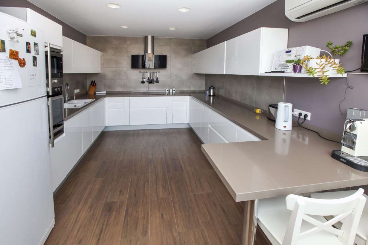 Fantastic penthouse of 240 m2 for sale in the center of Albir. Close to all amenities quiet and a few meters from the beach. The property has been completely renovated in 2013: the windows have been replaced new parquet flooring thermal insulation etc. It has installed air conditioning and central heating in all rooms underfloor heating in the bathrooms. It consists of a large living room of 65 m2 with fireplace a beautiful fully equipped kitchen utility room six bedrooms and three bathrooms. It will be sold furnished. It has solar panels for energy savings. The price includes two storage rooms and two parking spaces mon areas offer gardens and pool.