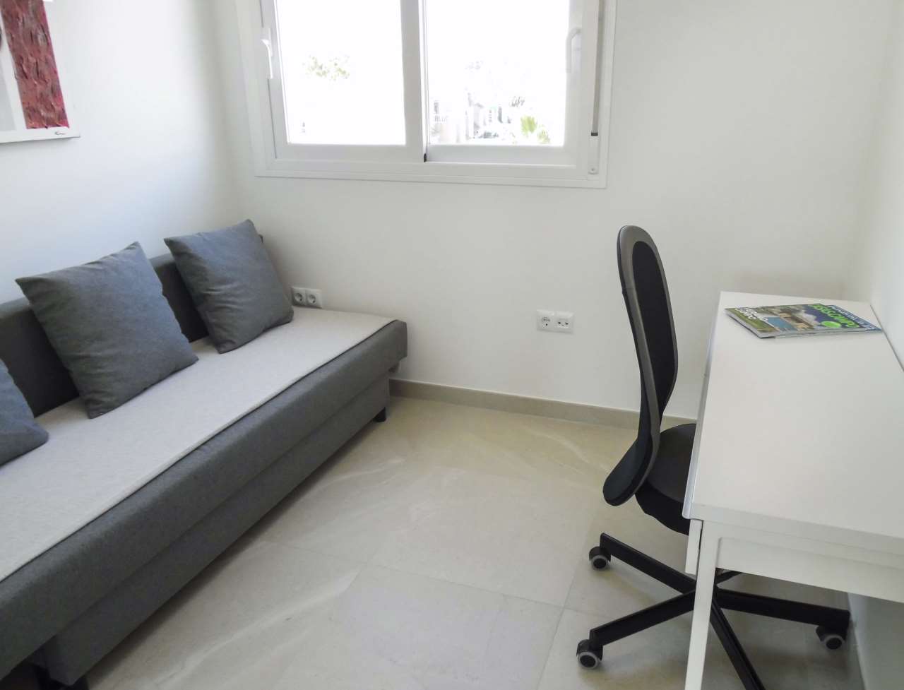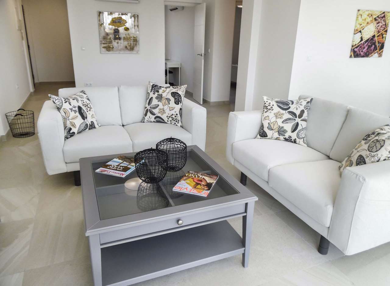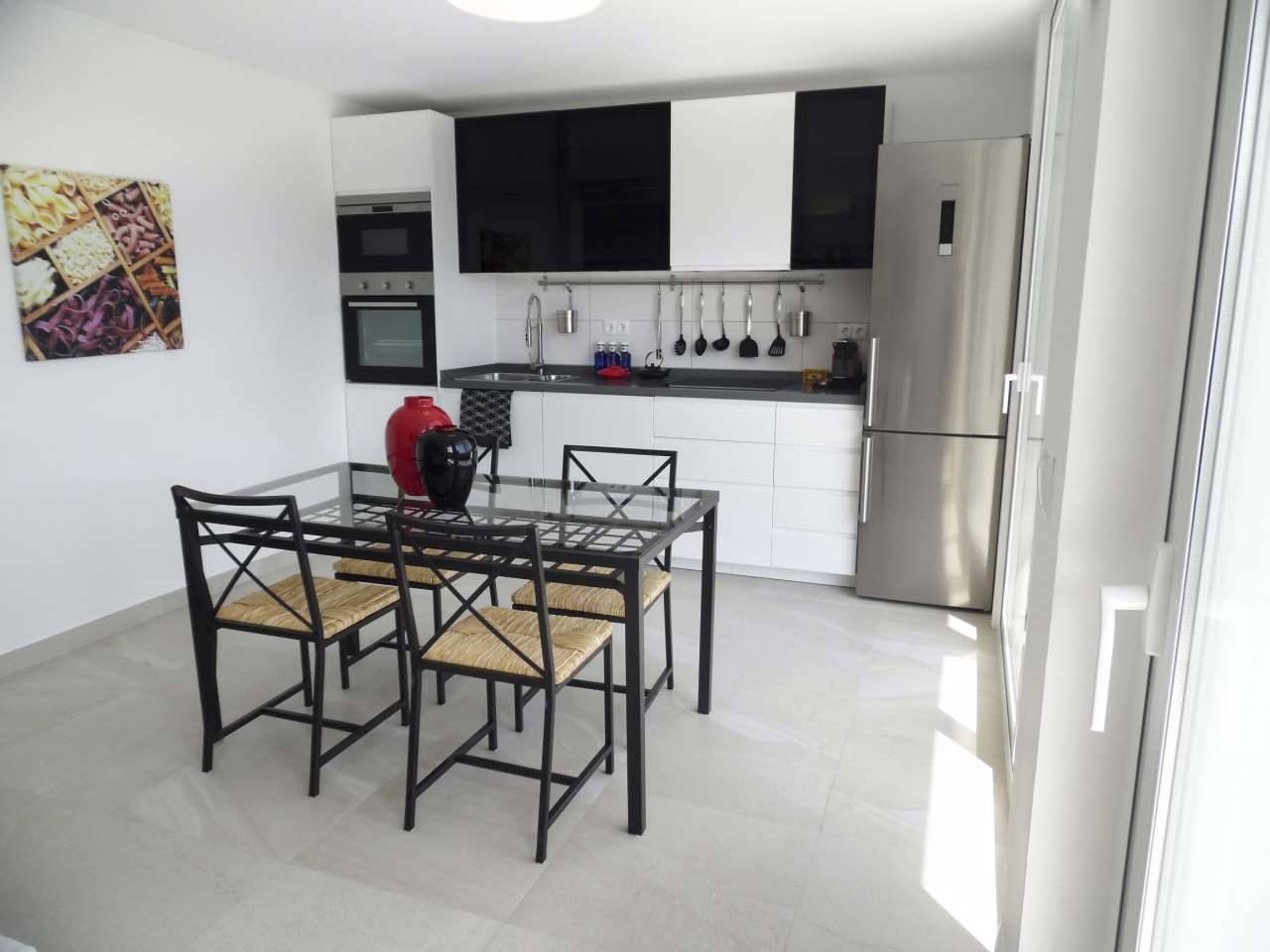 Newrenovated modern corner penthouse of 86 m2 for sale in Albir. It is located in the centre of albir close to all services and public transport. Totaly renovated with new electrics and plumbing good isulation of walls and ceiling. Sold fully furnished. It has a living room with open kitchensolutions a eastfacing terrace two bedrooms and a bathroom with floorheating. There is a large communal solarium with beautiful views. Closed garage included in the price.