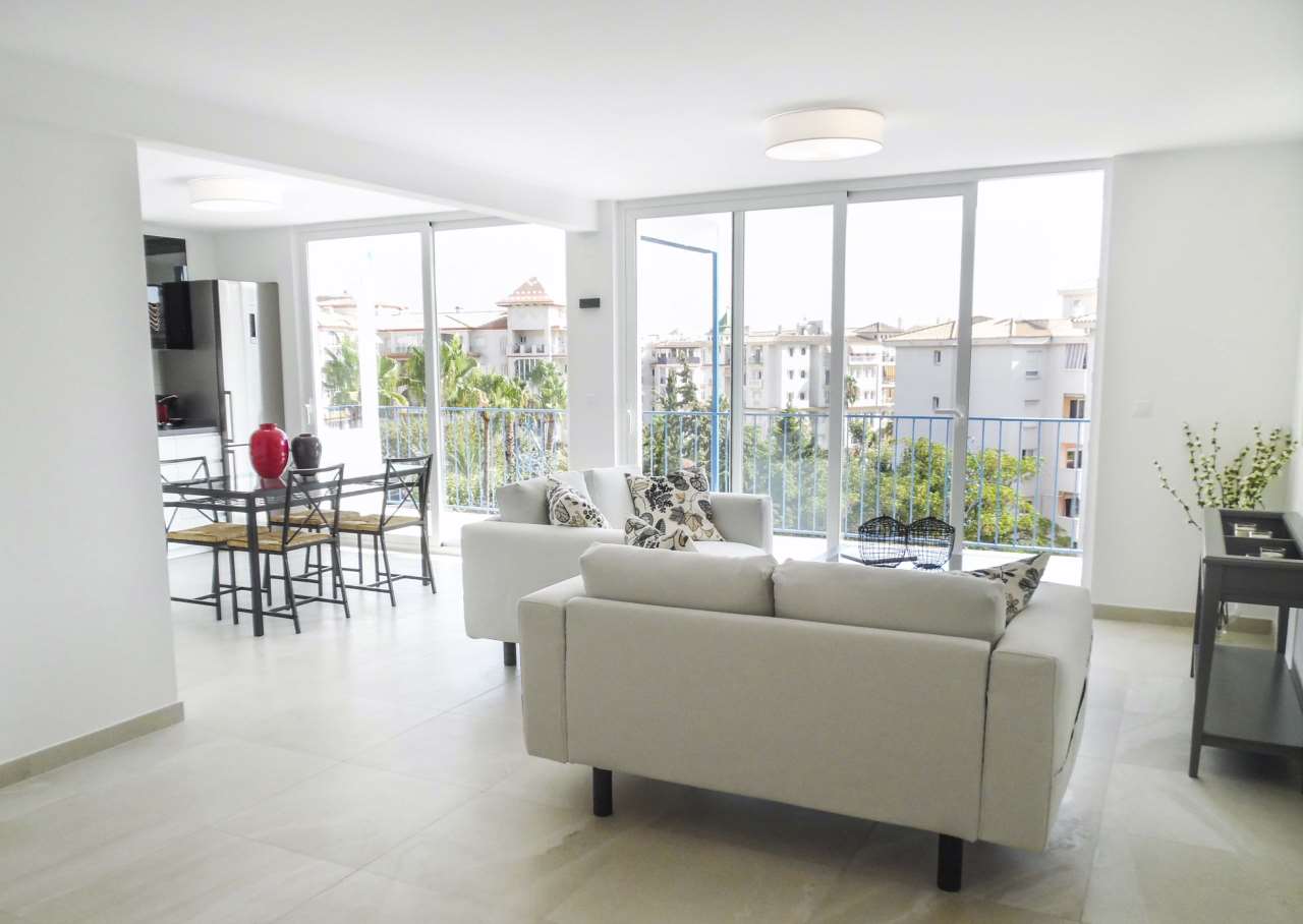 Newrenovated modern corner penthouse of 86 m2 for sale in Albir. It is located in the centre of albir close to all services and public transport. Totaly renovated with new electrics and plumbing good isulation of walls and ceiling. Sold fully furnished. It has a living room with open kitchensolutions a eastfacing terrace two bedrooms and a ba...