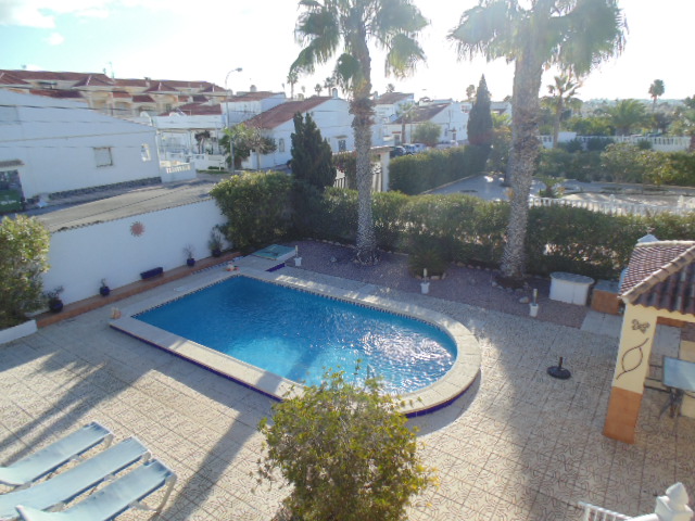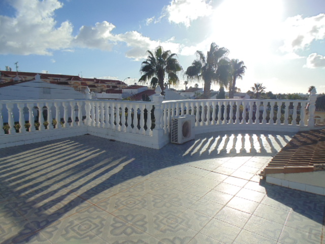 Very spacious 3 Bedroom 2 Bath (1 en suite ) Detached Villa all on 1 level ready to move into located in San Luis just outside of Torrevieja. Off road parking private garage swimming pool and roof solarium. Outside bbq area underbuild storage . Fully fitted kitchen air con in 2 Bedrooms and lounge comes fully furnished and ready to move into. On a large plot great opportunity . REF:BLC00181