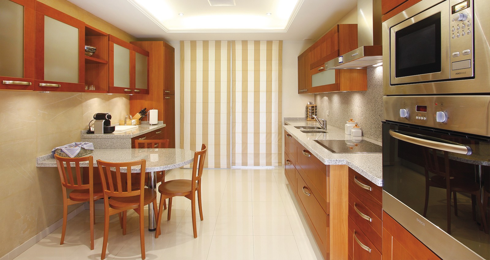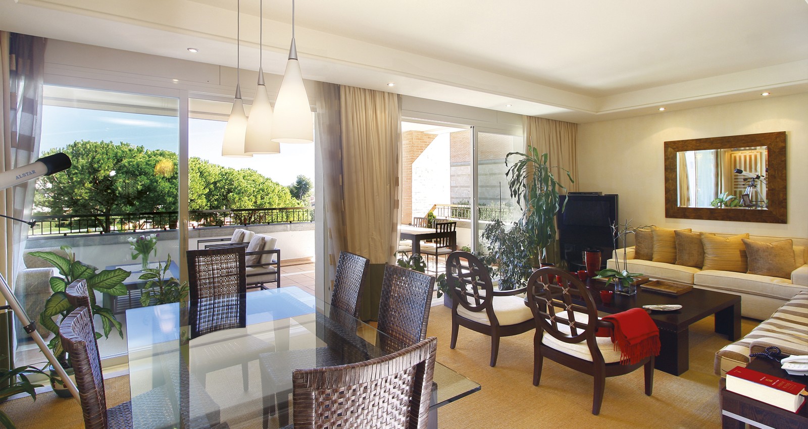 The apartment is accessed via a central entrance that gives access to the spacious living and dining area to the fully equipped kitchen with separate laundry room as well as to the three bedrooms all with en suite bathrooms.