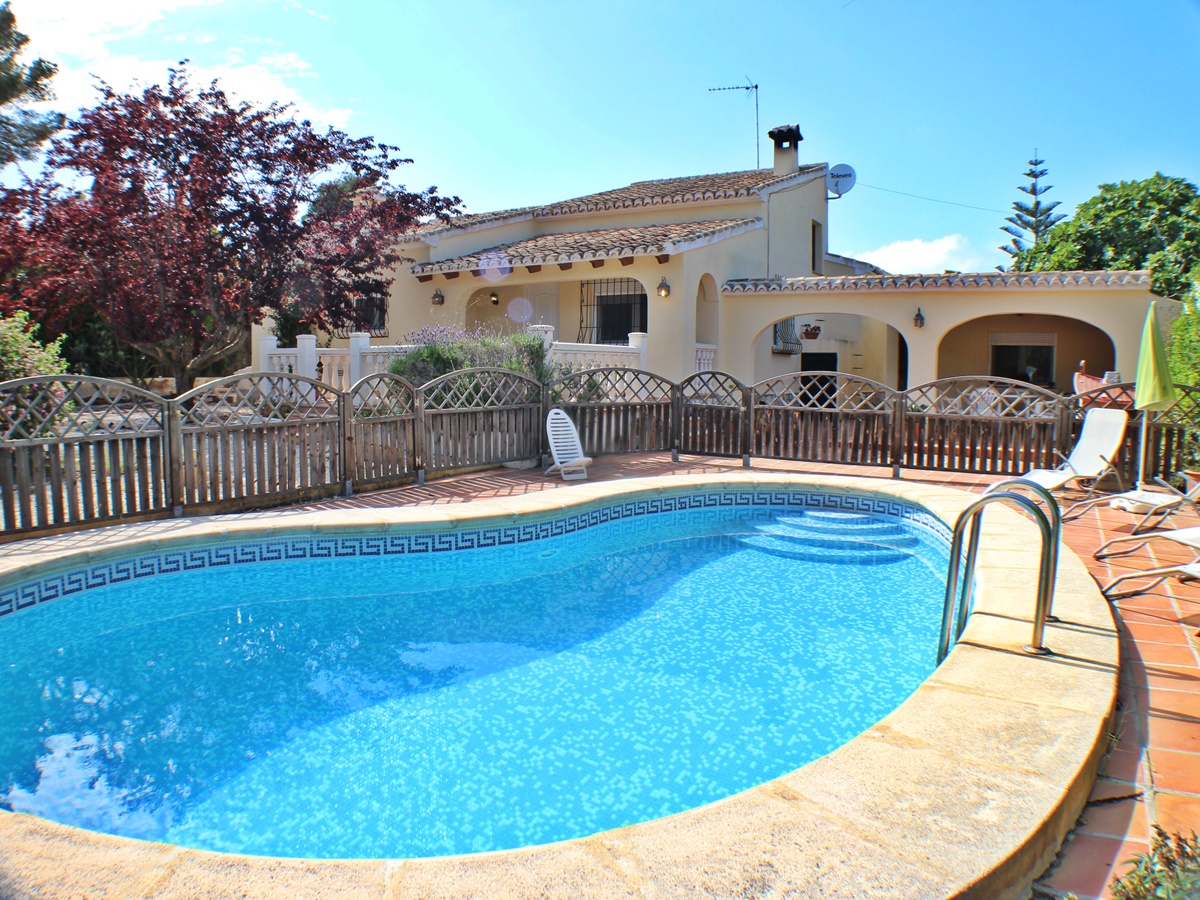 Villa with four bedrooms and guest house for sale in Javea s Costa Nova area with private swimming pool on a flat plot.
