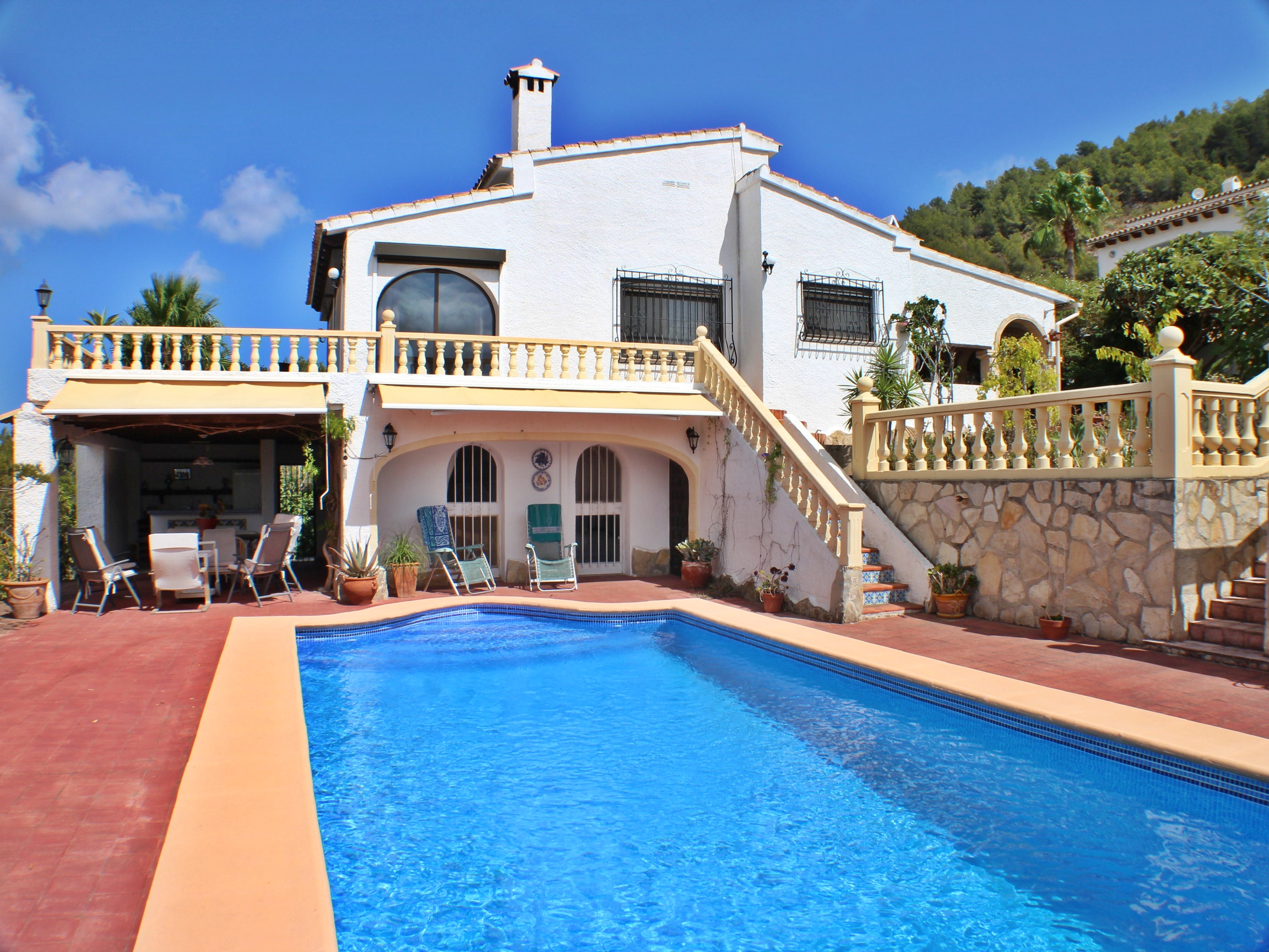 Four Bedroom villa for Sale in Javea in the Cansalades Park Urb with superb panoramic views private swimming pool and fantastic summer kitchen and outside spaces.