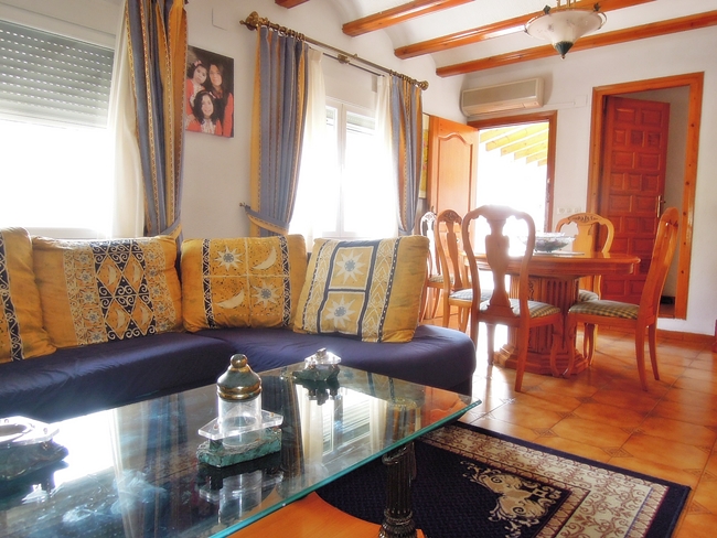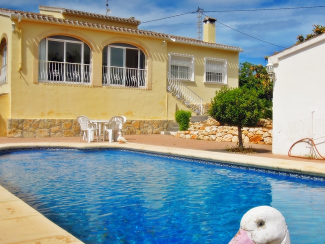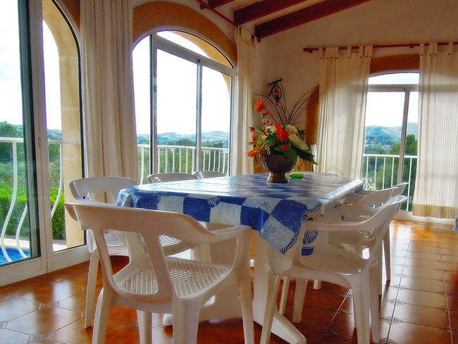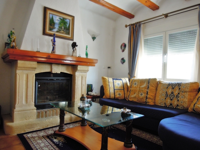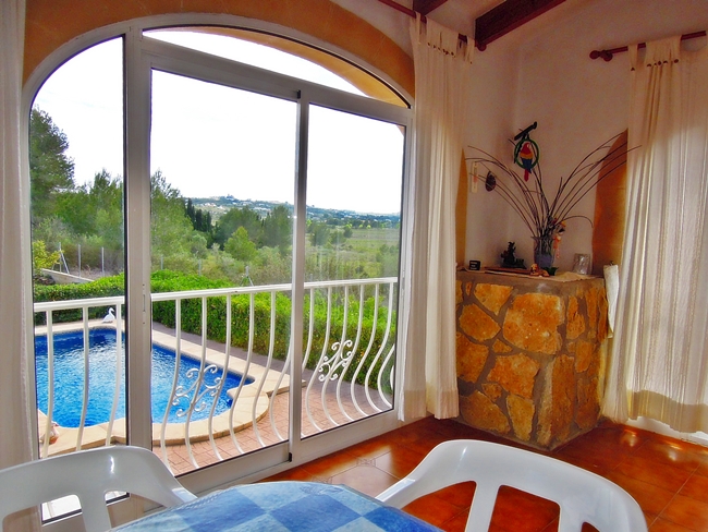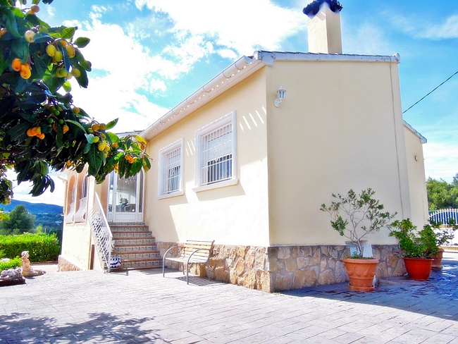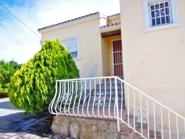 Three bed villa for sale on a large plot of land in a secluded area close to the excellent golf club in Javea. Air conditioning BBQ area Electric gates Fenced property Fireplace Glazed naya Mountain view Storage room Underbuild Utility room Window shutters Countryside view