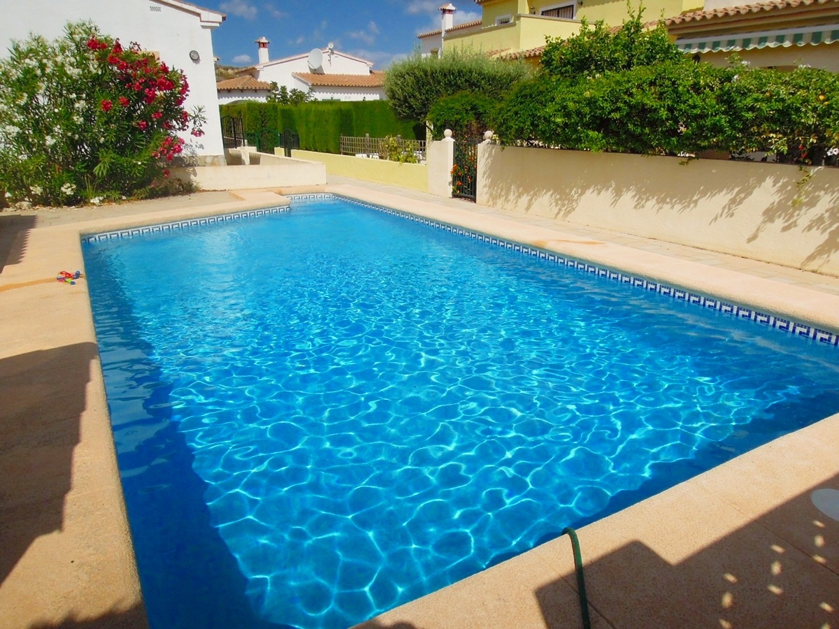 Modern three bed villa for sale in Benitachell with communal pool shared with only five other villas. Central heating Double glazing En suite bathroom Fitted wardrobes Fully furnished Naya Off road parking Private garden Quiet location Terrace Utility room Window shutters