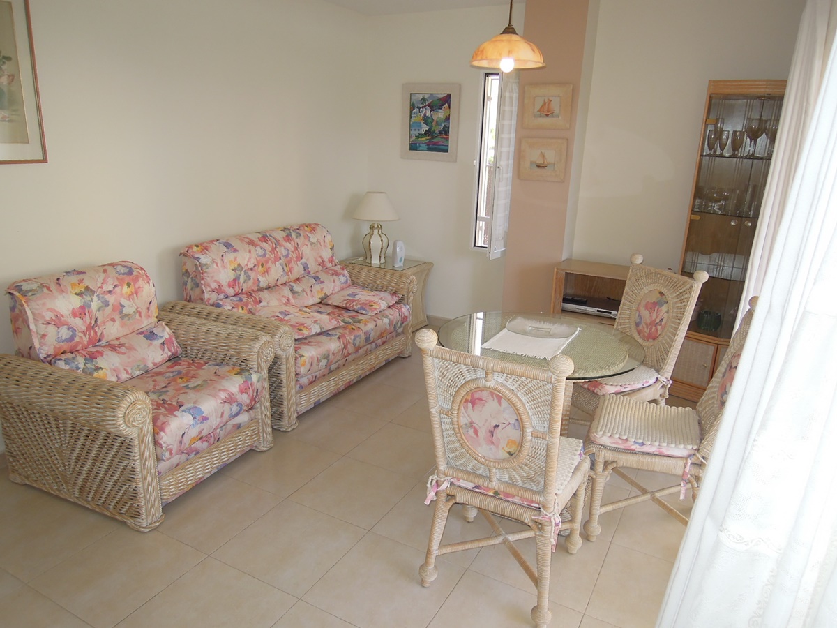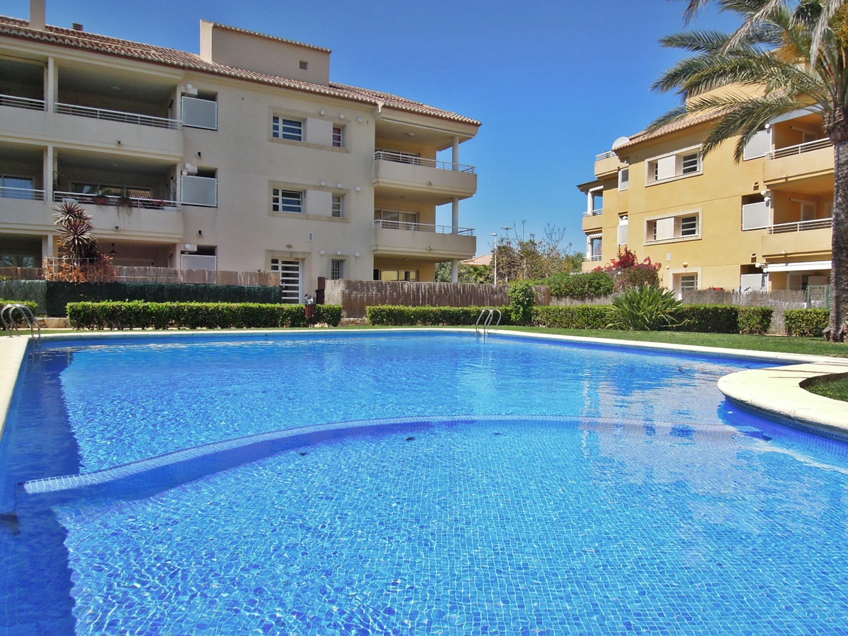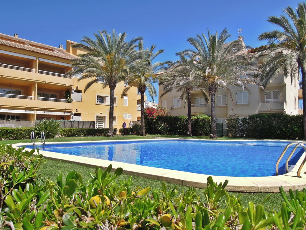 One bedroom ground floor apartment for sale in Javea Avenida Agusta area with communal swimming pool.