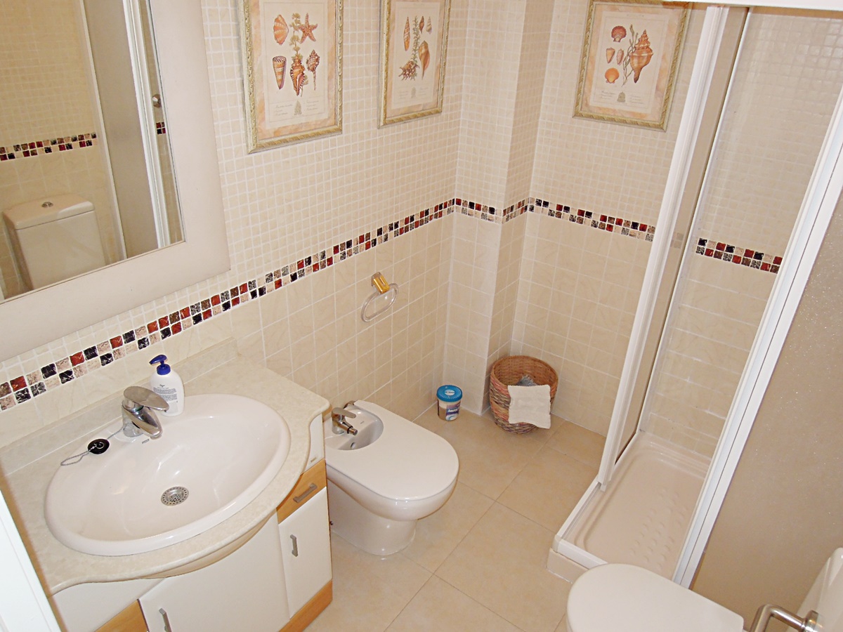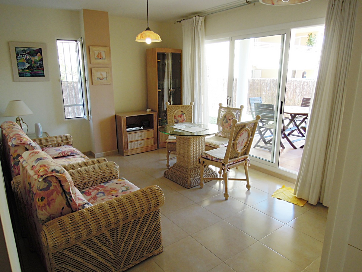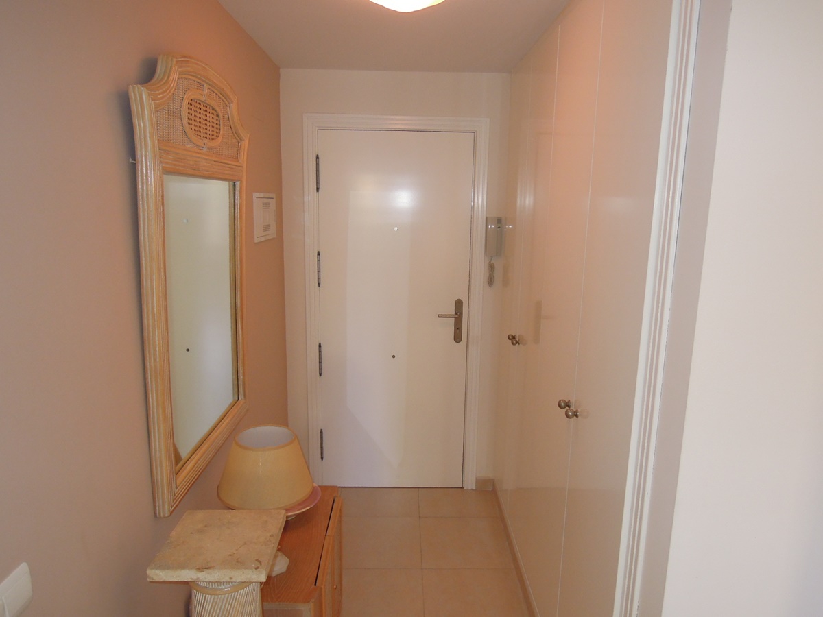 One bedroom ground floor apartment for sale in Javea Avenida Agusta area with communal swimming pool.