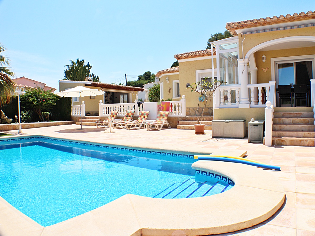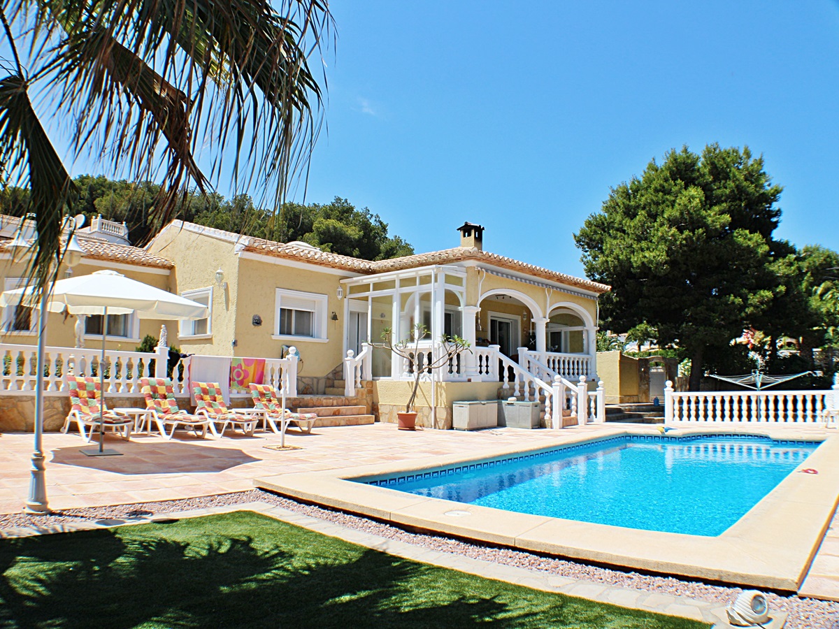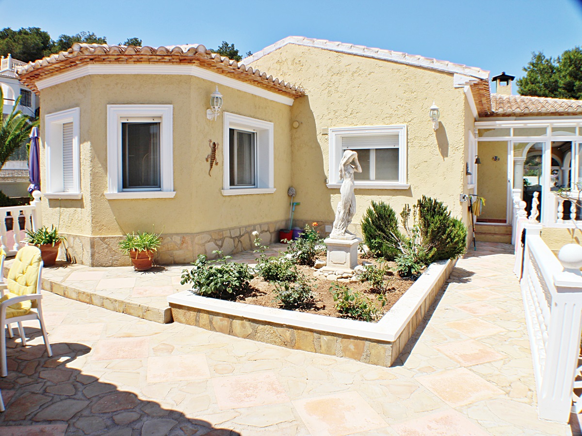 Three bedroom villa for sale in Javea with slight sea views all on one level. Situated in Balcon Al Mar. Alarm system Central heating Close to amenities Double glazing Electric gates En suite bathroom Garage Glazed naya Separate dining room Summer kitchen Window shutters Wood burner