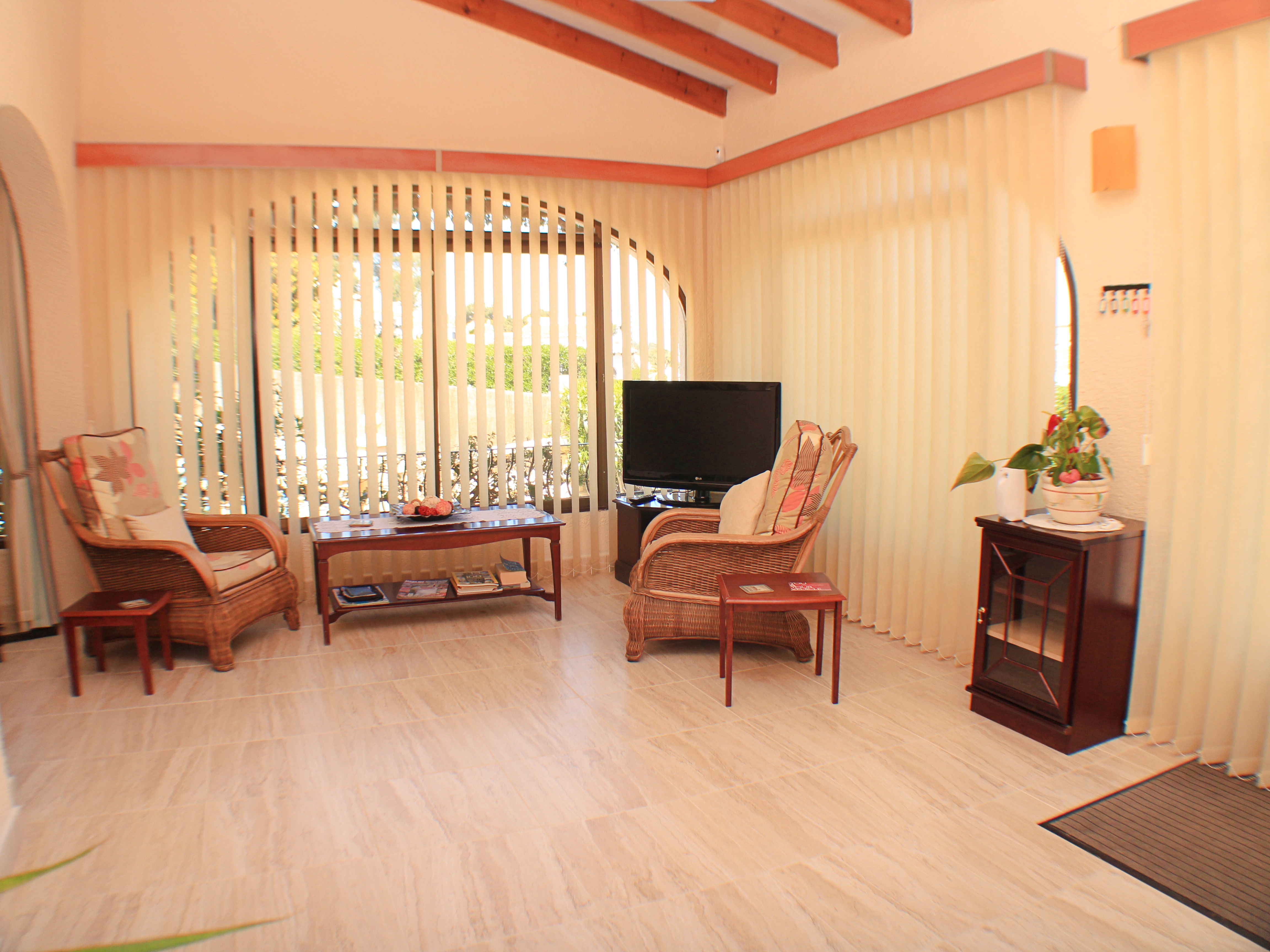 This well presented villa was fully renovated in 2015 including central heating and air conditioning. On the ground floor the living area comprises: a large L shaped glazed naya with open views over the swimming pool and the landscape beyond lounge with fireplace separate kitchen separate dining area family bathroom and two spacious double b...