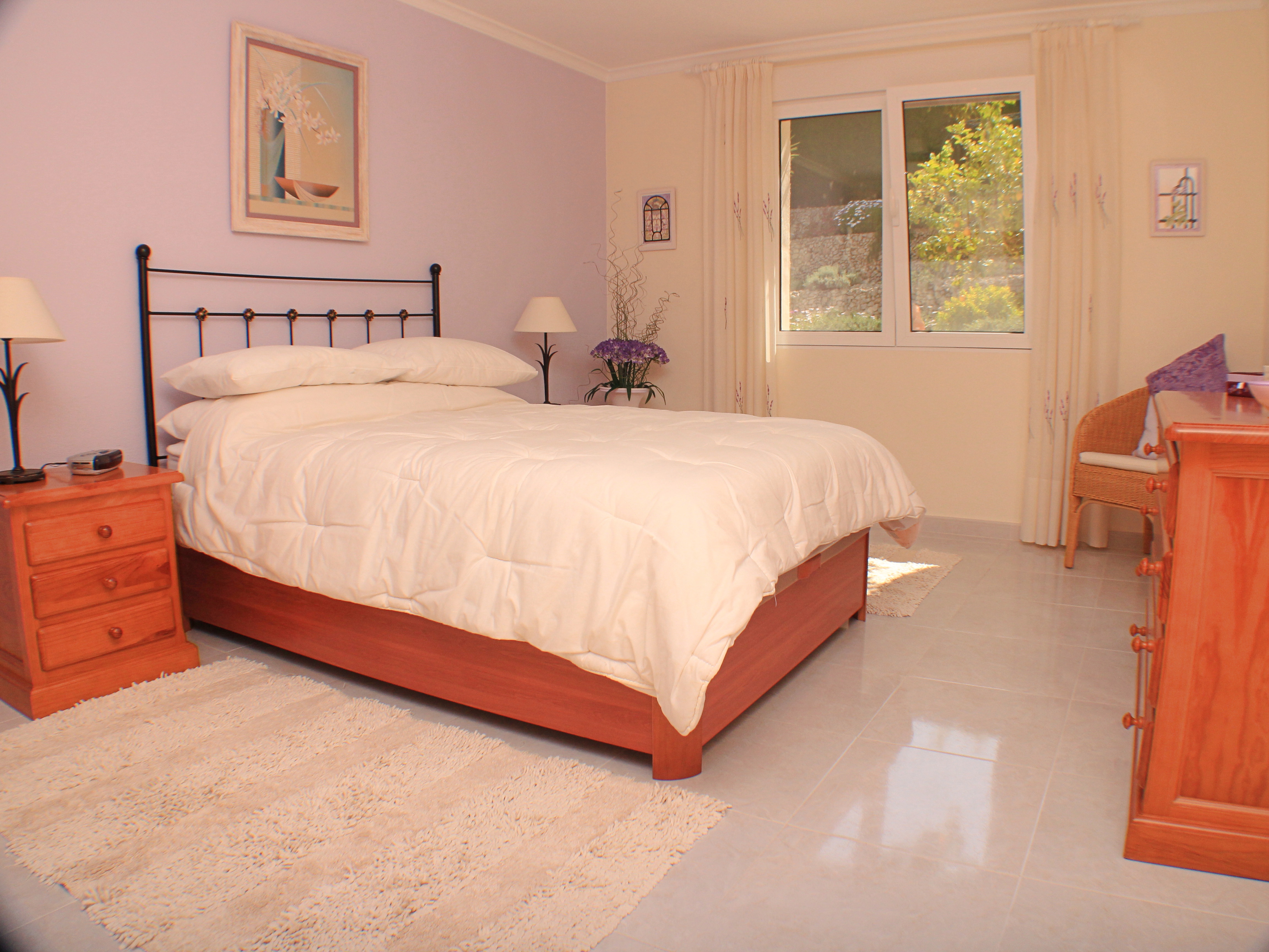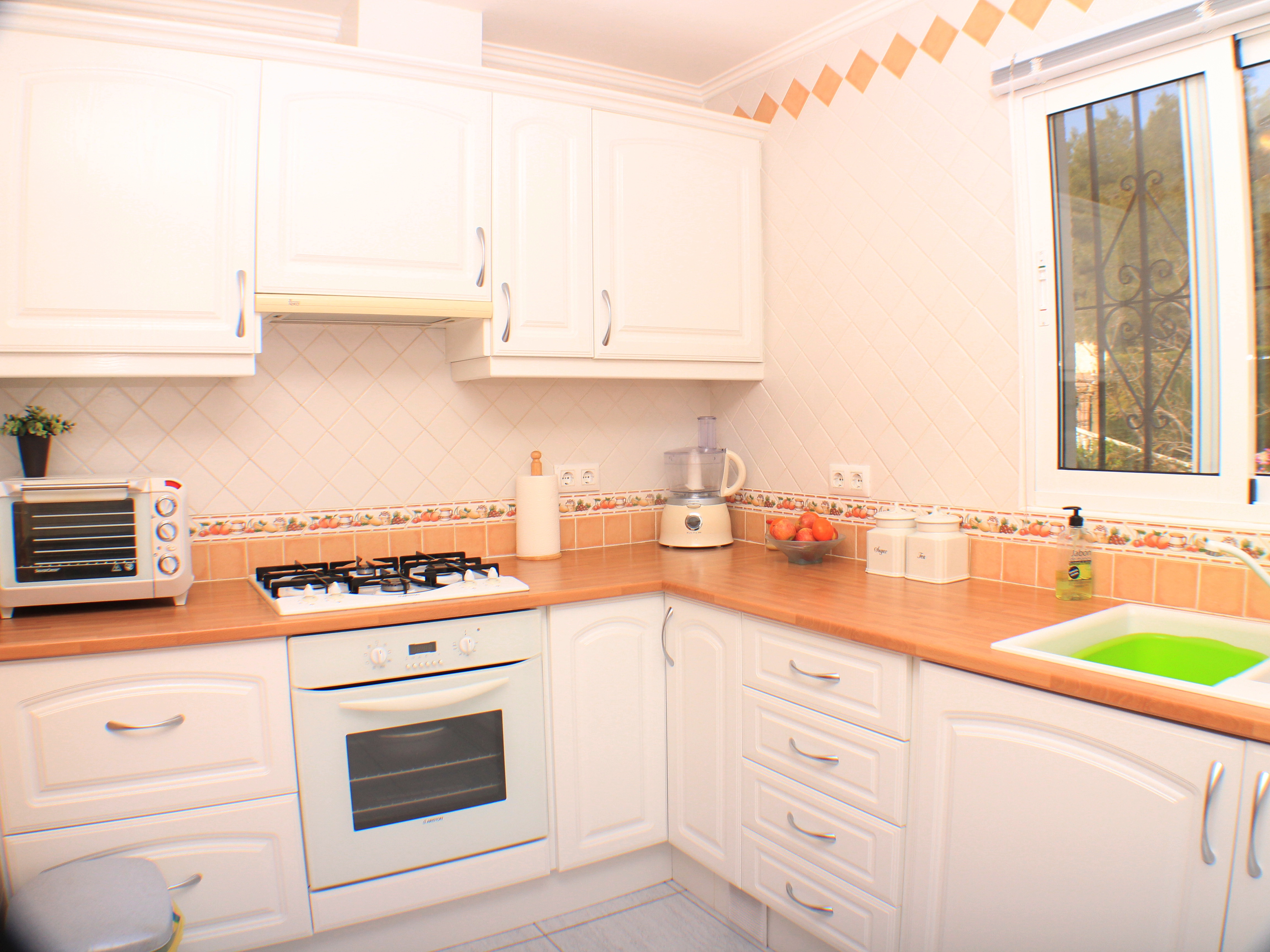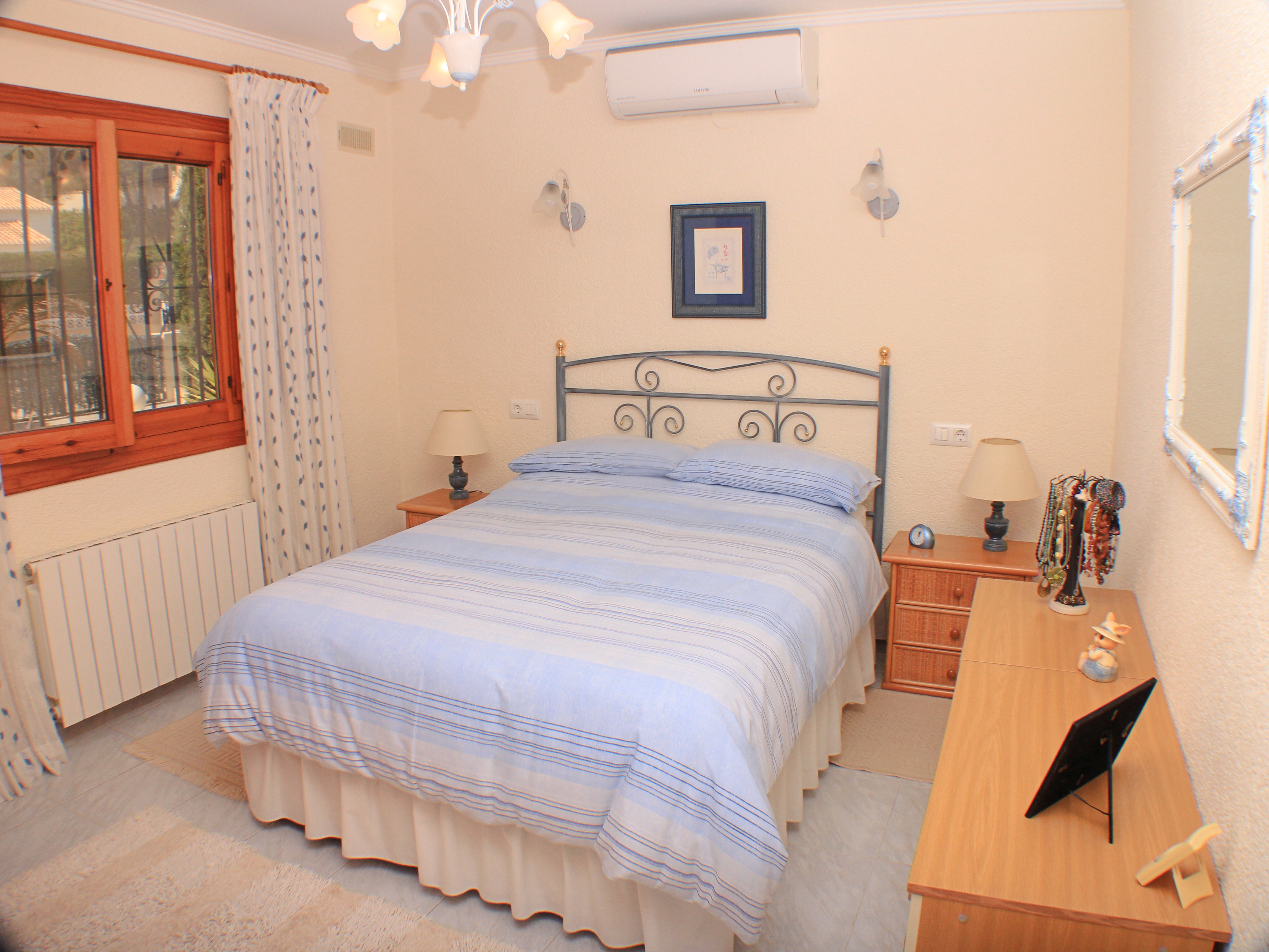 This very well presented villa is situated on a very nice corner plot in the established Covatelles area of Javea it is surrounded by beautifully landscaped private gardens with all day sun. From street level the main entrance leads past a sunny terrace to the door of the main living area. Inside a hallway leads to the living room with fireplace and and a separate kitchen From the living area you can access the glazed covered terrace (naya) which gives lovely views over the swimming pool and towards Montgo. Also on this level are two double bedrooms with fitted wardrobes and a family bathroom. Downstairs accessed by a separate entrance you will find an equally well presented guest apartment with kitchen living room with patio doors to the outside also there are two spacious double bedrooms with fitted wardrobes and a spacious family bathroom. Outside the fantastic swimming pool has surrounding terraces a pergola for shade a garage store room and a 2 car carport at the end of the paved drive. Th beautifully landscaped sloping plot is a pleasing mix of gravel and various trees suited to the excellent climate we get in Javea. This property deserves viewing soonest.