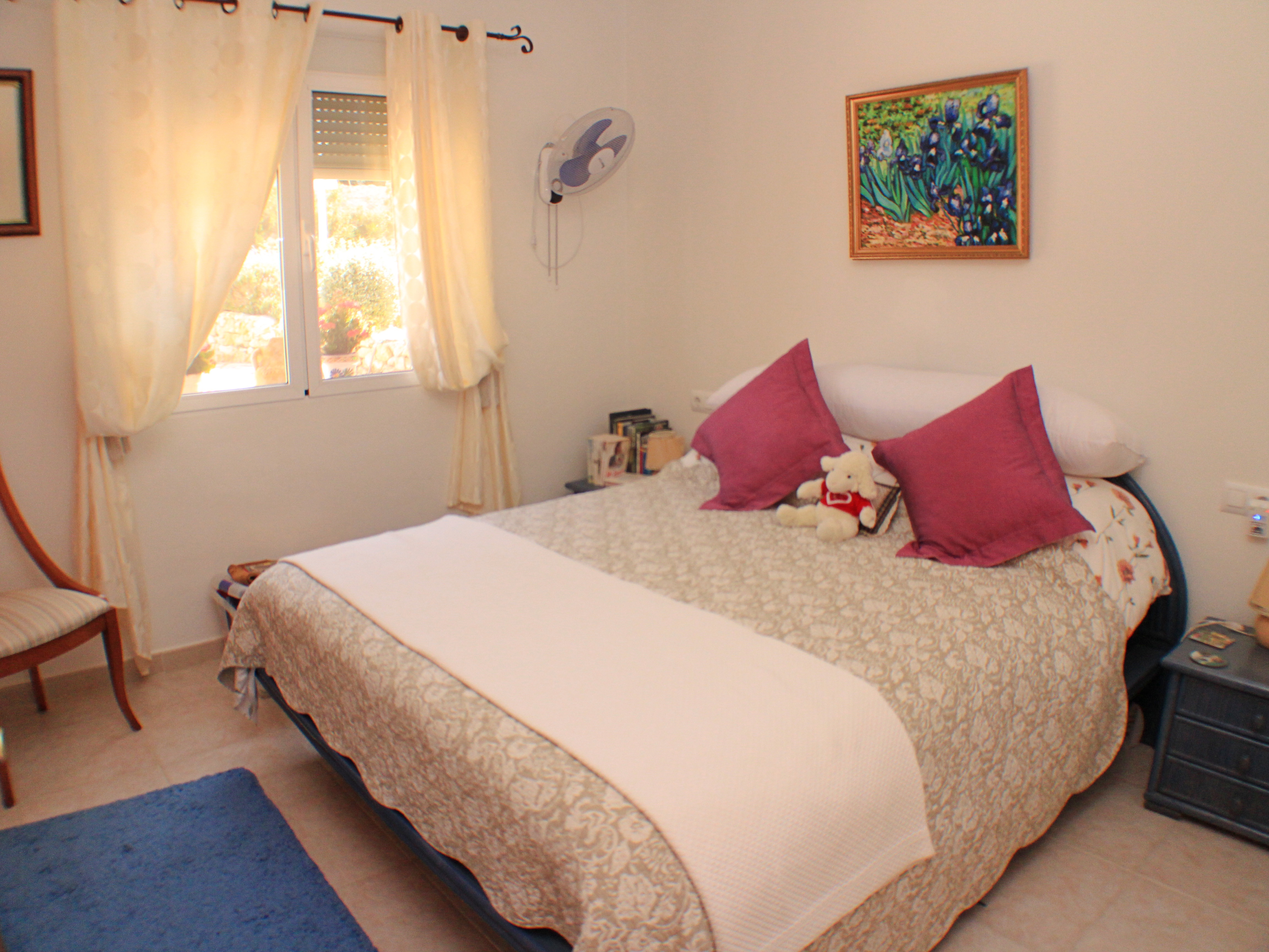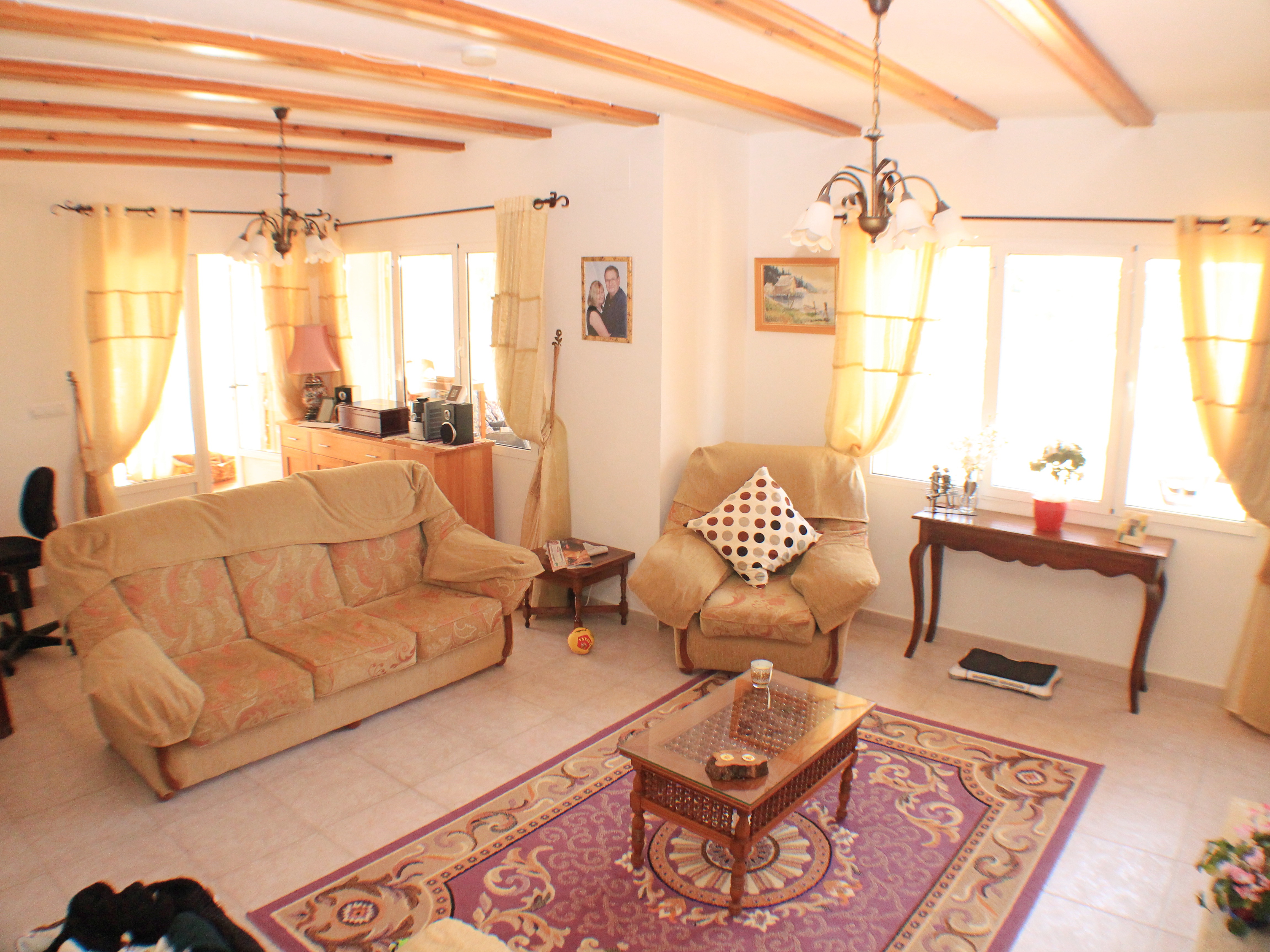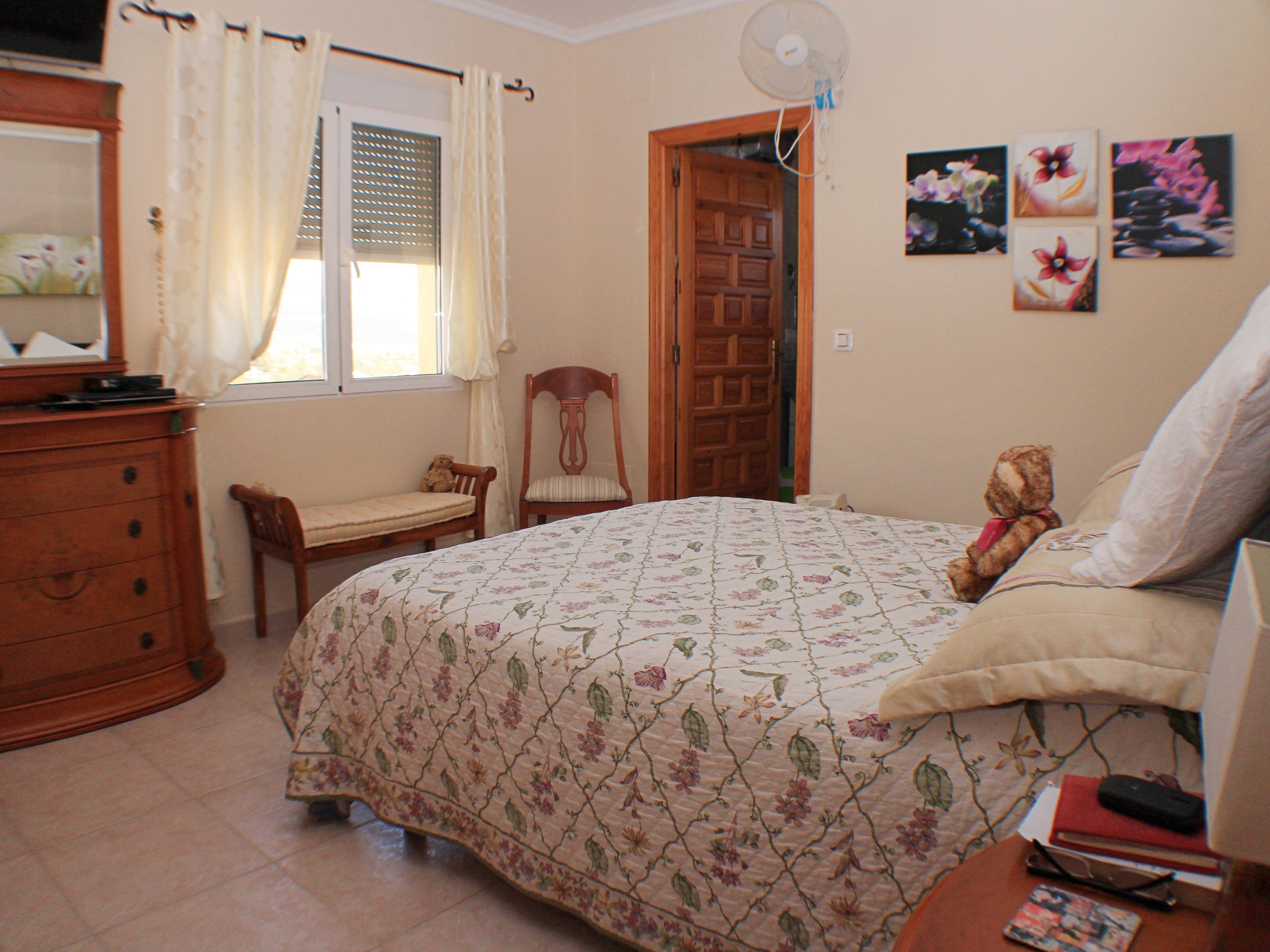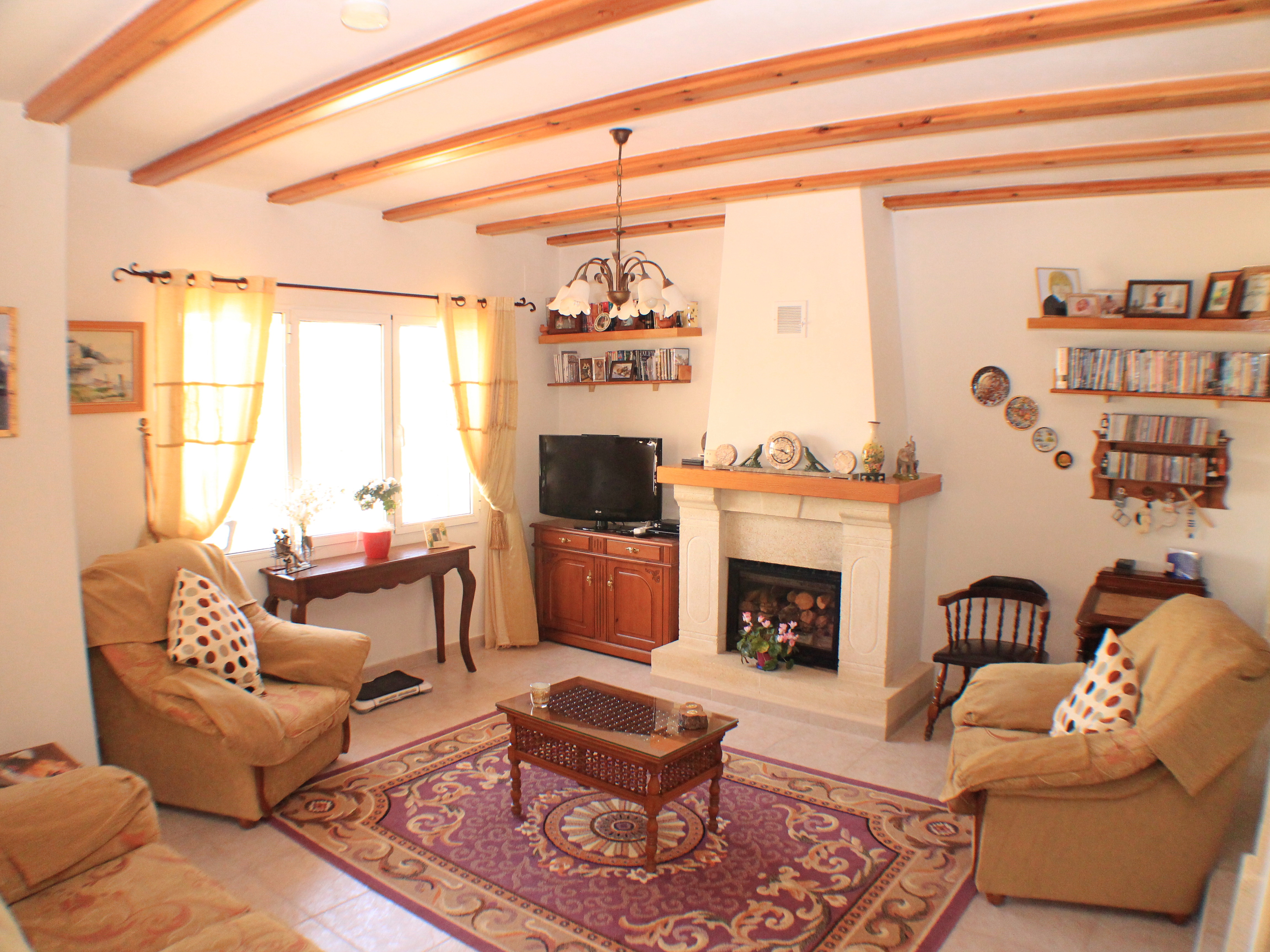 This lovely traditional style three bedroom villa was built in 2000 and benefits from superb panoramic views of the landscape including the famous Montgo mountain. From street level entry is via attractive gardens leading to the the main entrance and hallway. To the left is a spacious independent kitchen which gives access to the impressive L shaped glazed (terrace (naya). From the hallway you pass the living room with traditional stone fireplace and dining area on your way to the master bedroom with en suite two double bedrooms and a family bathroom. The glazed terrace (naya) opens directly on the the swimming pool terrace with lovely open views. A sloping driveway leads to a carport garage and utility room (complete with toilet) offering scope for further development underneath the main house and there is also a well equipped summer kitchen.