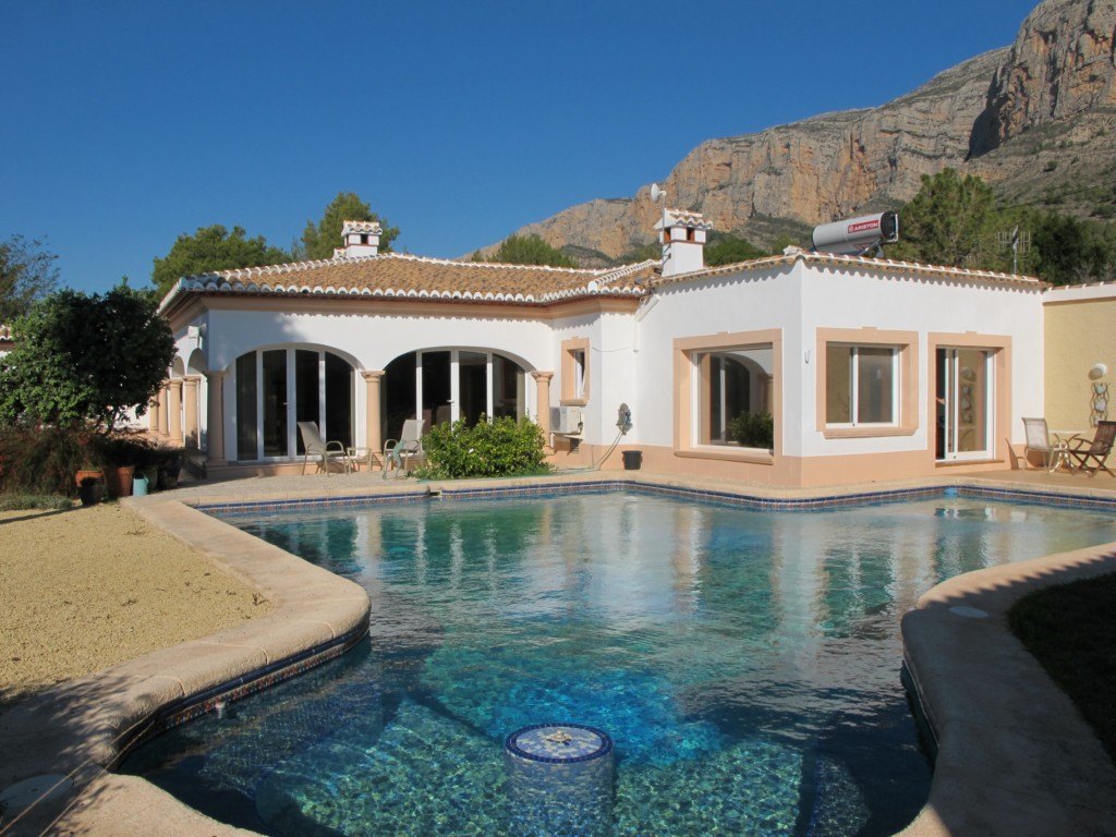 Large villa on the slope of Mount Montg . In Javea In the heart of Costa Blanca with a special climate and also protected thanks massif of Montg this superb Villa is located. In the plot of 2 439 m2 is they have built 523 m divided between the main villa and a separate guest apartment. The building goes on sale second hand and with the guarantee of a perfect state.
